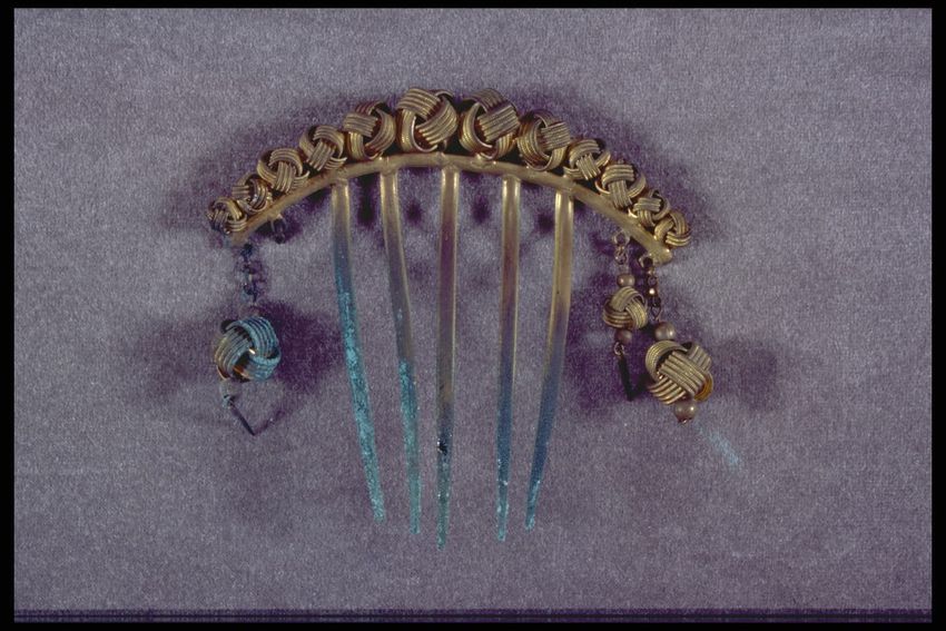Rosewood chair with turned elements in the chair back; turned stiles with finials, 3 banisters and 3 rails; no arms or stretchers; front legs are turned; rear legs are squared and curved back; wool upholstered seat with red, orange, yellow, green, blue, black and white floral and diamond pattern wit...
