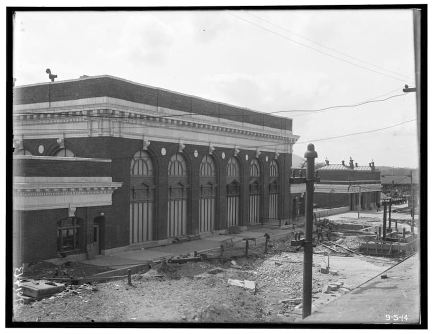 Just before completion of new passenger station, north side, looking west, Pittsfield, Massachusetts, 9014-B