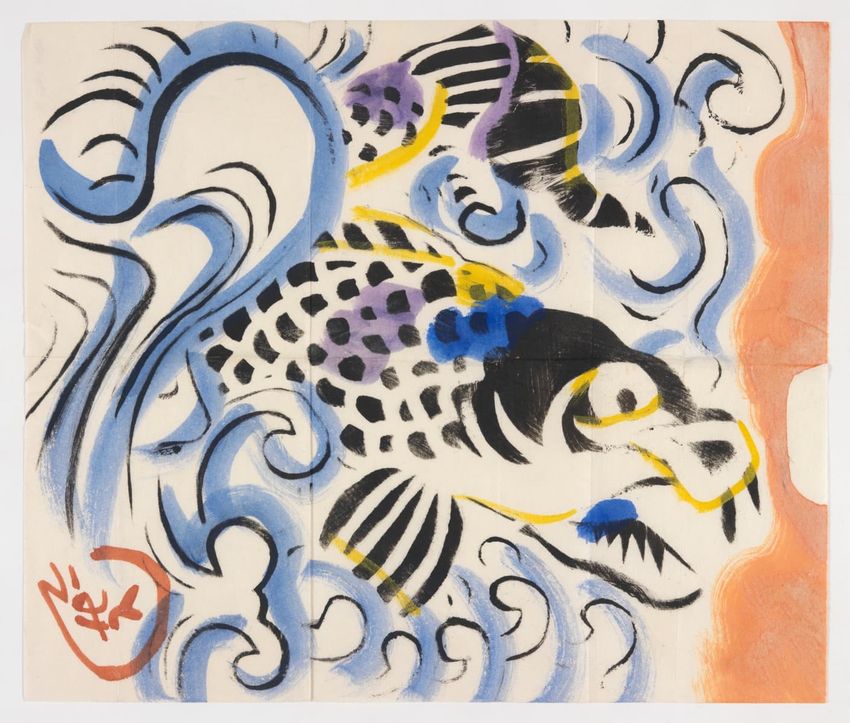 Squat circular form probably used for floral arrangements. Neck decorated with raised decorative band having lattice work with flowers, bees, and hummingbirds. Body has flattened bulb shape with shoulder engraved with repeated floral design. Stands on low foot ring. Marked with maker and name on...