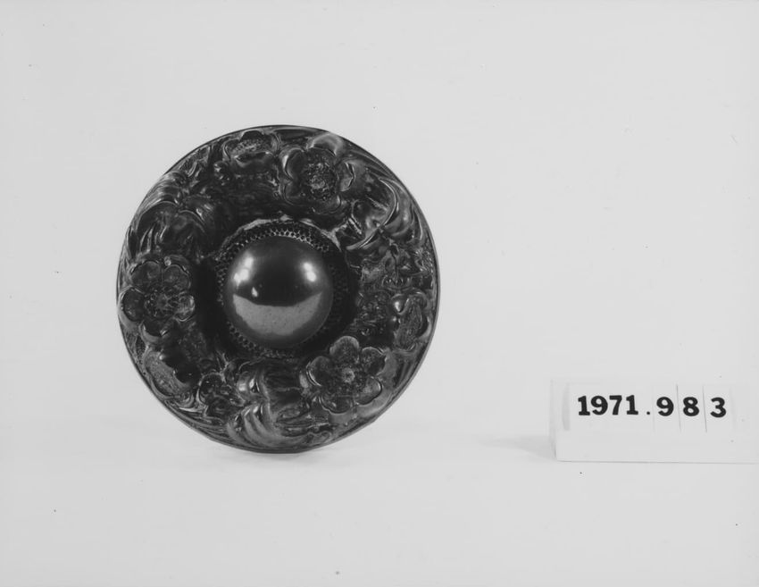 General pattern: brown transfer print decoration of elaborate multipatterned diapered border with scrolls and floral elements; central design of Western version of willow pattern with elaborate pagoda houses at right, trees in center, bridge and island at left; yellow, blue, green, orange and gilt o...