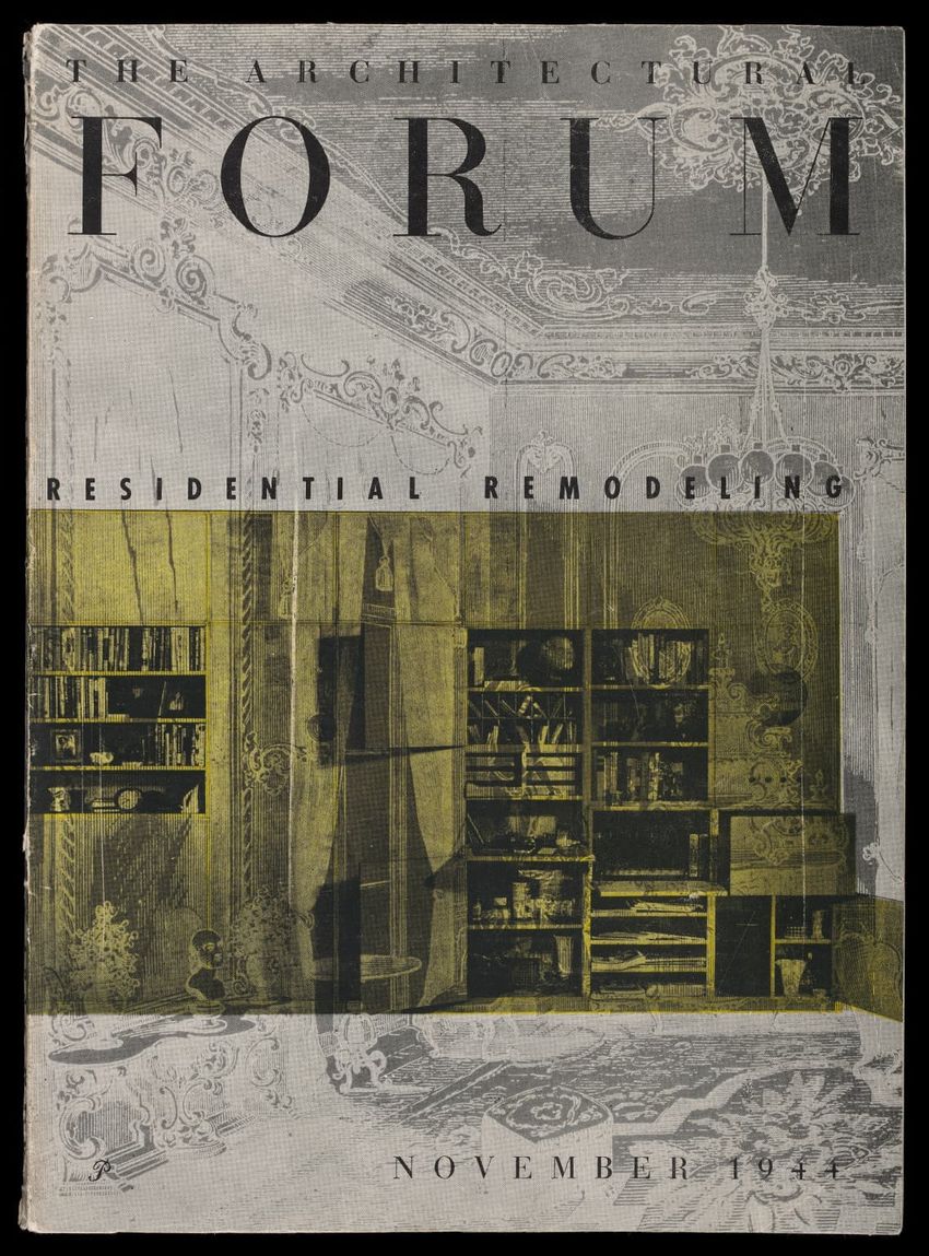 Vol. 81, no. 5 of The Architectural Forum discussing remodeling and modernizing residential properties. A variety of residential properties, including cottages, apartments, country homes, farm houses, and town homes are discussed. Photographs, illustrations, floor plans, and advertisements for vario...