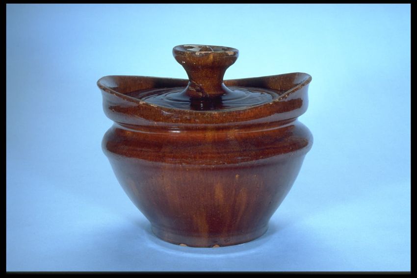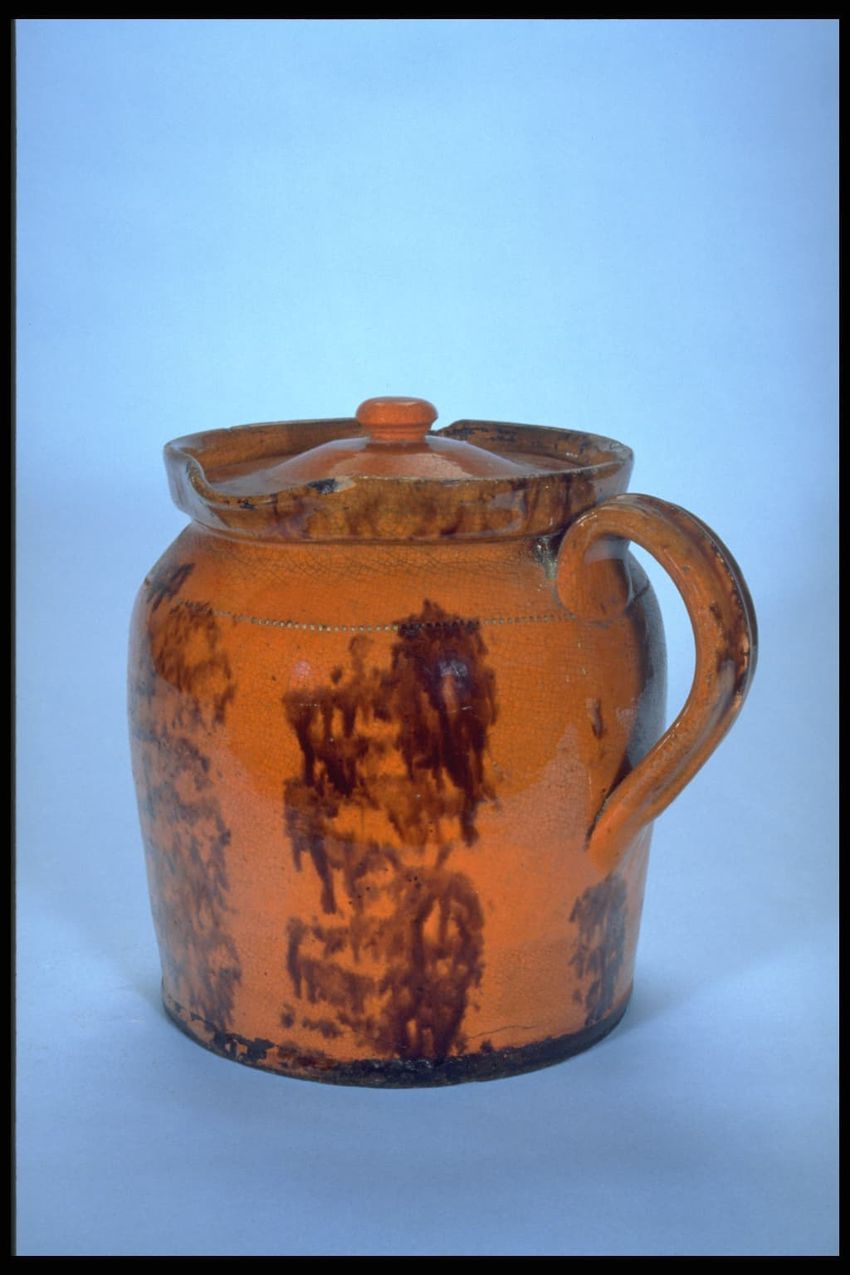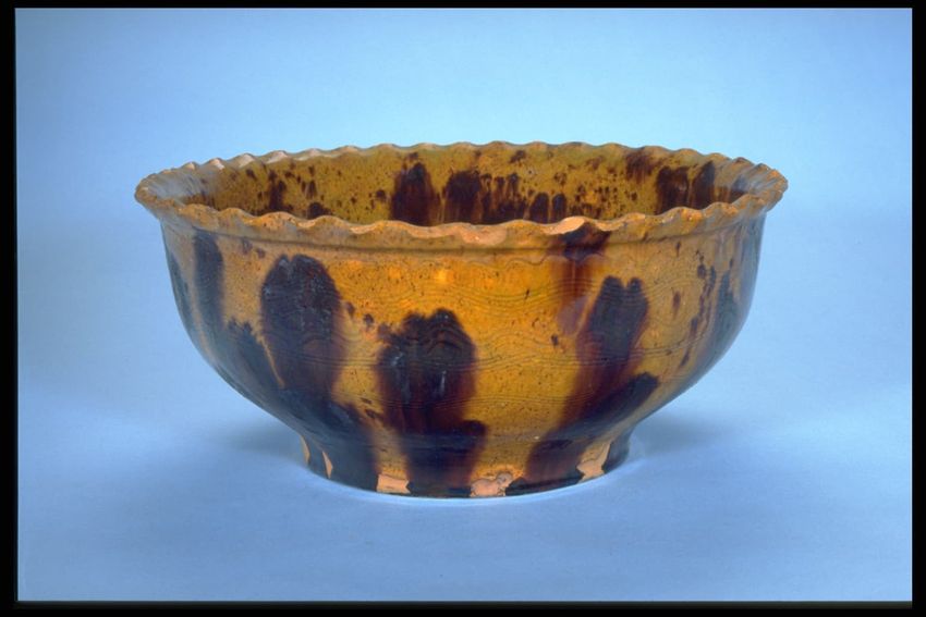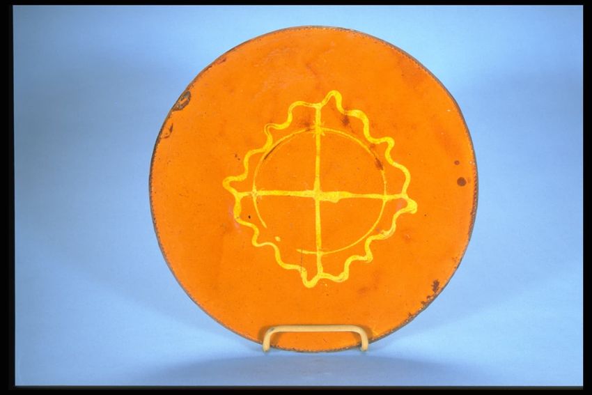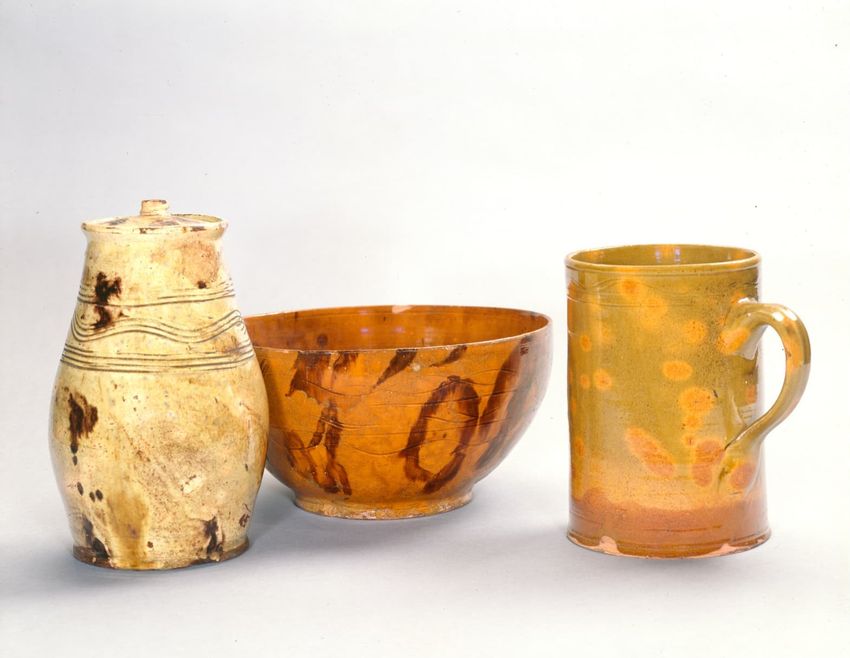 glazing (coating), incising, redware, throwing (pottery technique), lead glaze