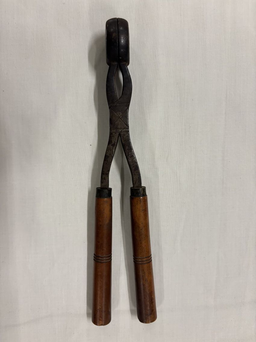 Small match box cover. (Sliding box missing) Laminated paper cover with metal frame over wood. Top of cover has printed image of house and in the right corner an oval portrait of man with glasses, pointing toward the viewer. Ignighter strip on one side.