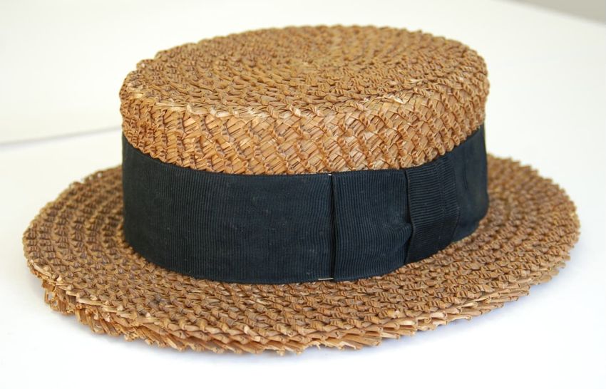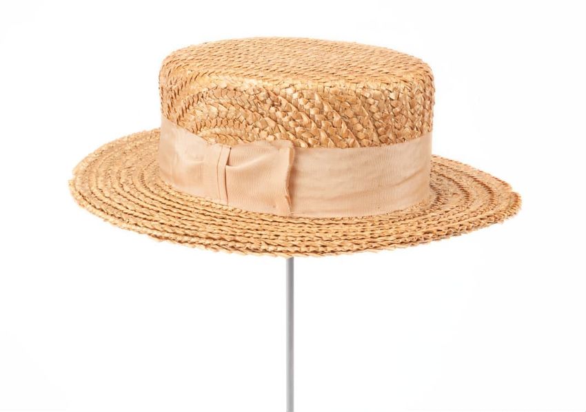 Wallpaper fragment with Colonial Revival vignettes depicting a weather vane, mortar and pestle, rifle, band box, and an antique store on a white ground. Run No. 4. Drop Match.