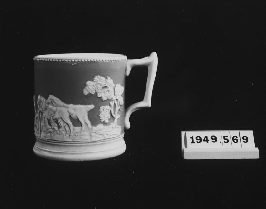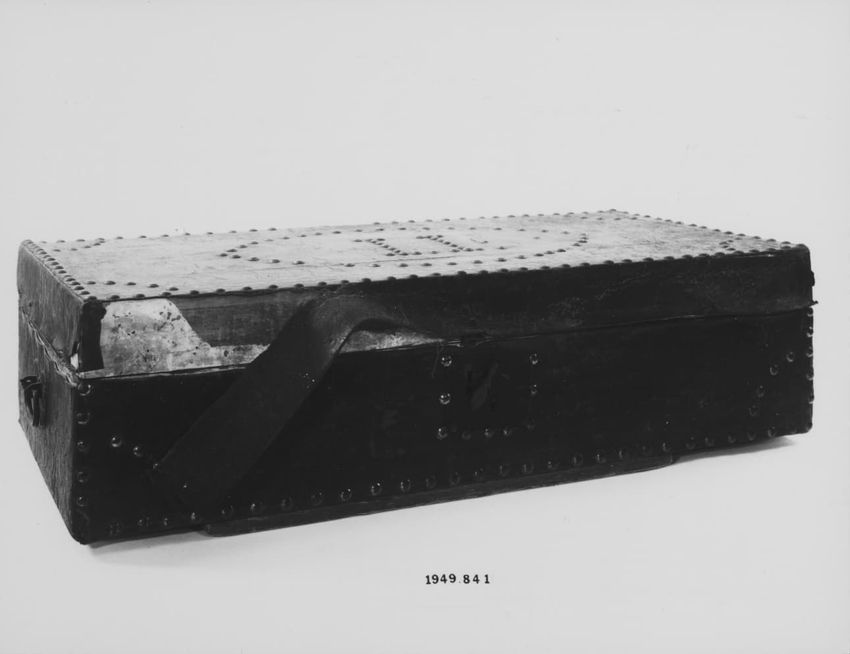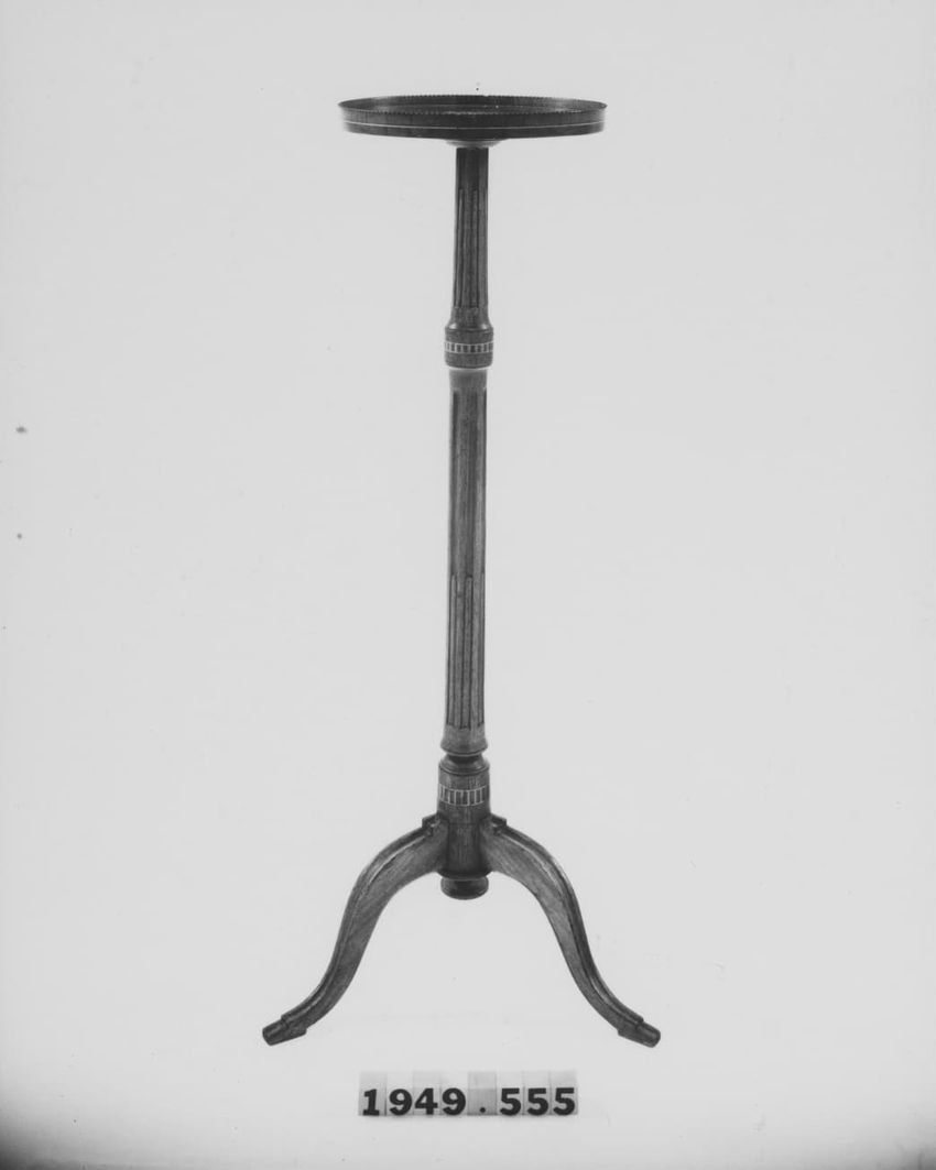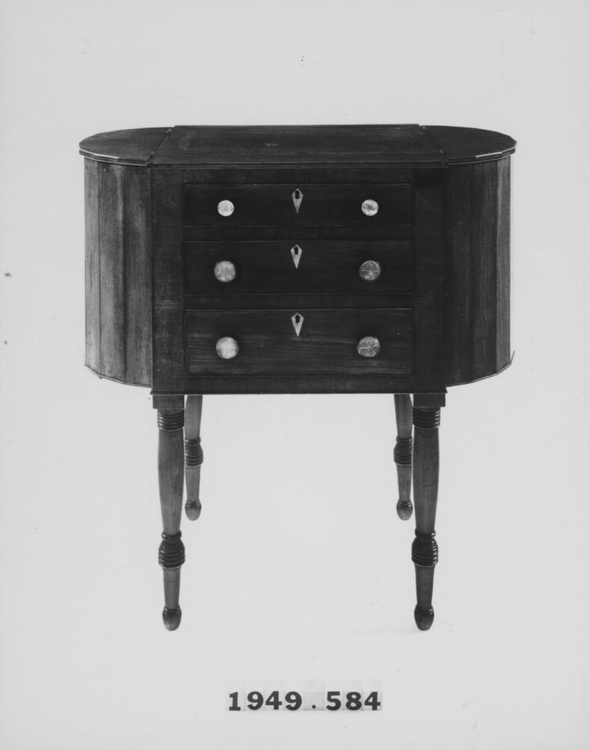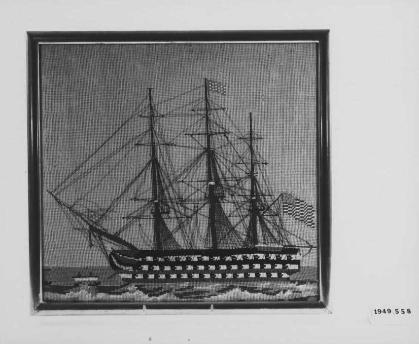 Fireboad; paint-decorated frame around wallpaper; wallpaper pattern depicts flowers (roses, lilies, and other small flowers) in open-weave basket on table top with floral design around edge of table top.