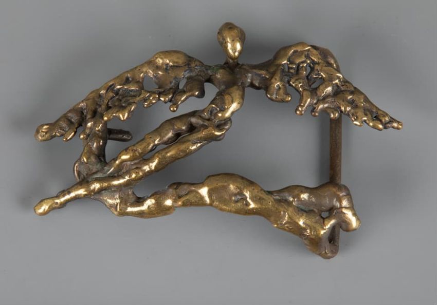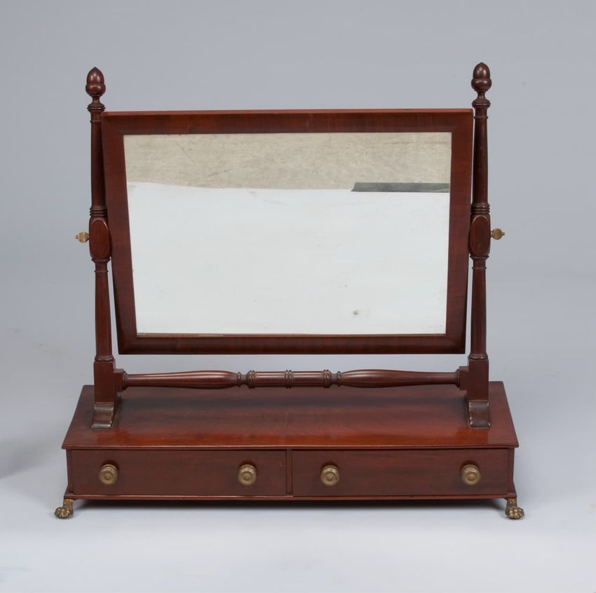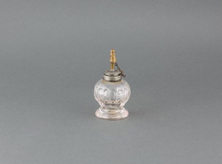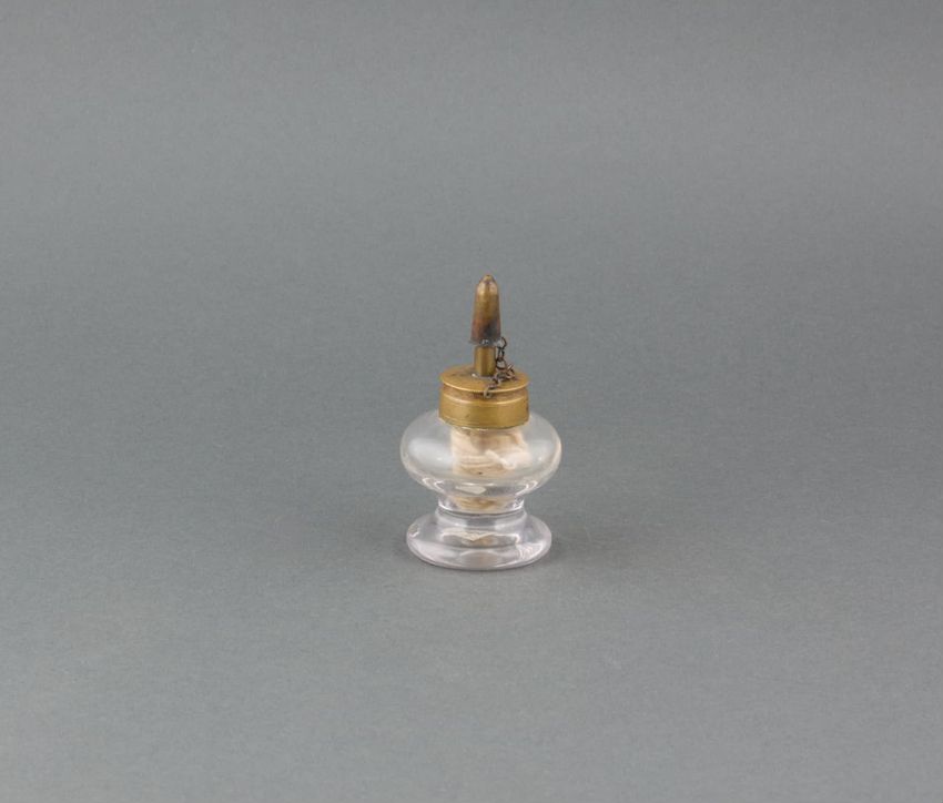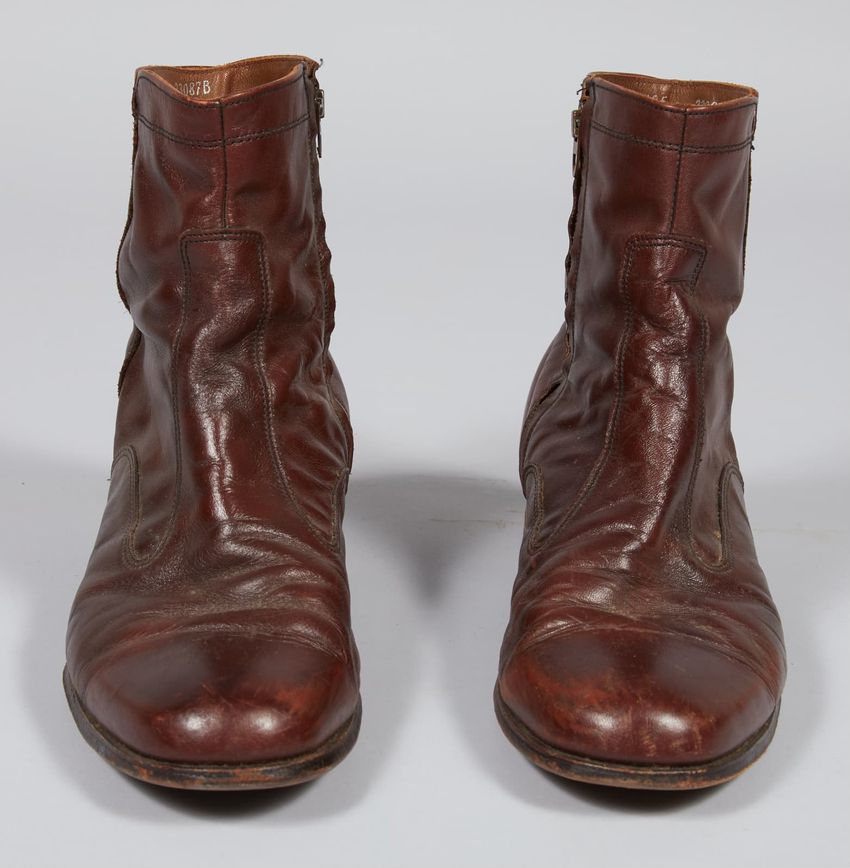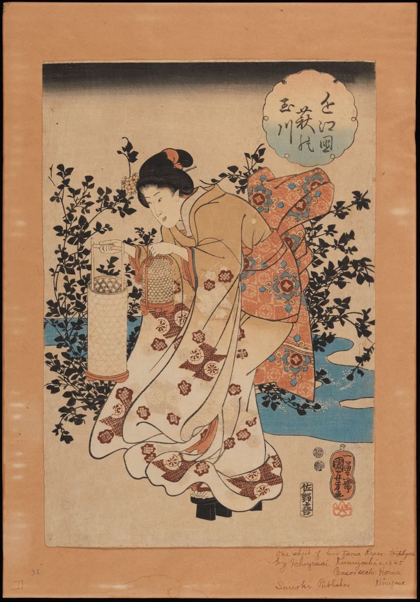 This round hat is constructed from synthetic fiber brocade. The design of the textile is repeating stripes of blue satin weave, alternating with wider stripes decorated with woven green floral vines, pink and red blossoms, and a third stripe of twined green and purple floral vines. The hat is soft, ...