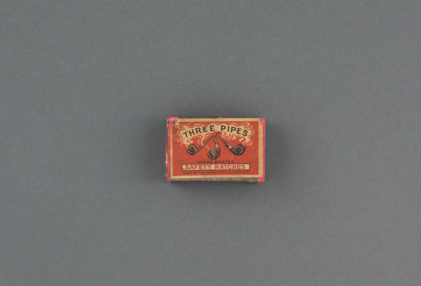 Red, black, and white cardboard cover "Ohio Match Co." containing matches.