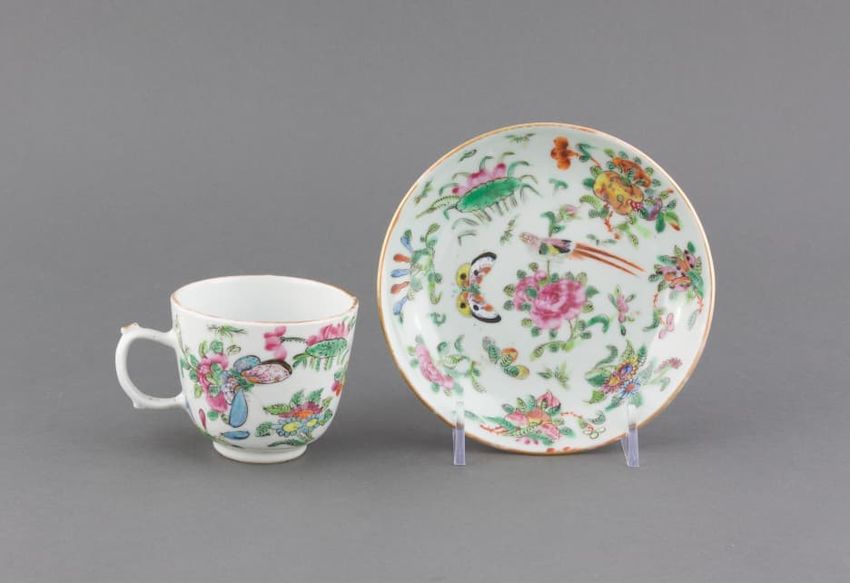 Cylindrical crock with ear-shaped handles, light tan exterior glaze and dark brown interior glaze. Bird standing on stick incised on both sides of crock. One of the birds has been glazed blue. Above the blue bird is stamped "JULIUS NORTON, BENNINGTON, VT." and "3" also glazed blue.