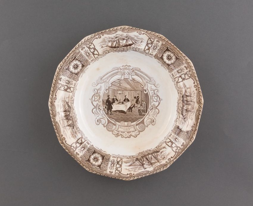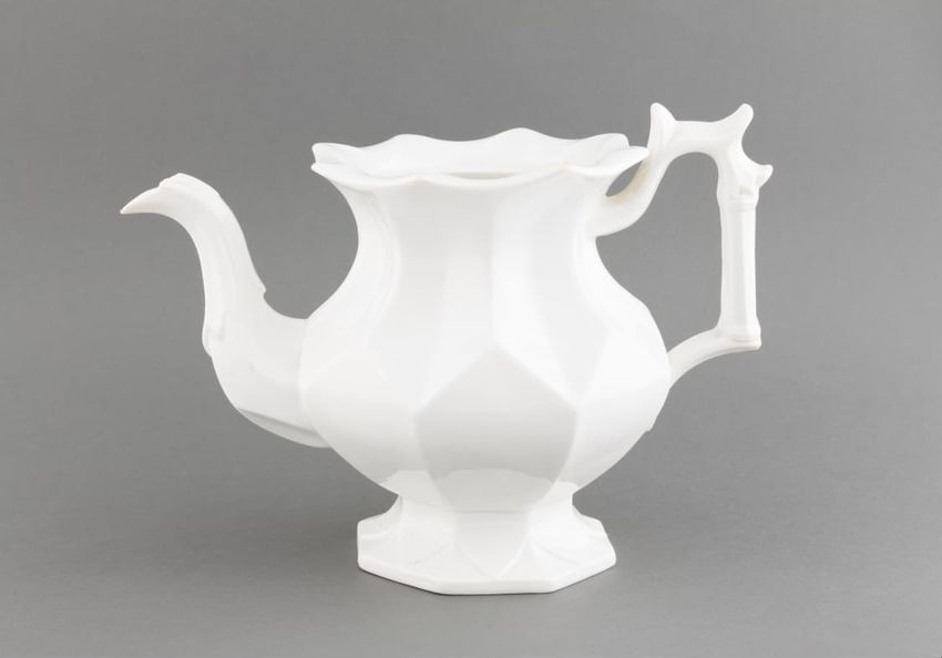 Miniature toilet set including a pitcher [.1], basin [.2], chamber pot [.3], and tray [.4]. Gold gilt bands, accents, and floral designs. Hand painted roses.