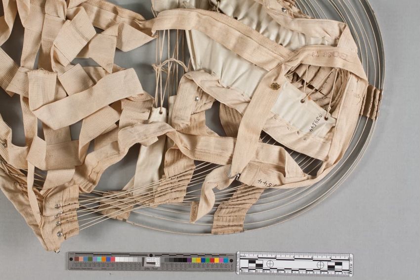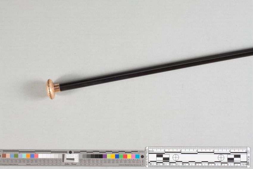 Philco Highboy, Model no. 95. Exterior veneered paneling with fleur-de-lis on both sides. Double doors open up to display radio dial, contraols, speaker, and embroidered "tapestry" scene depicting trees, covering the speaker.