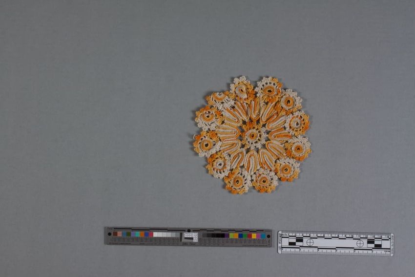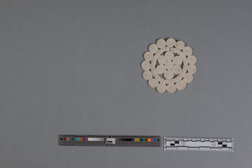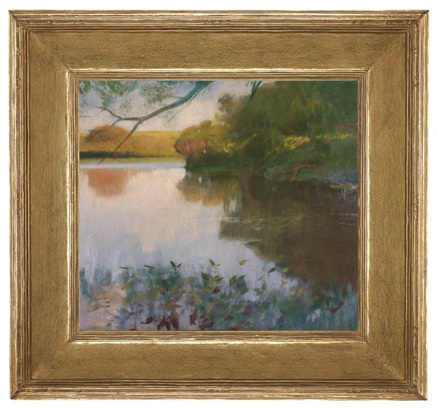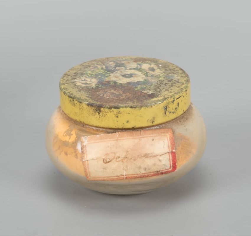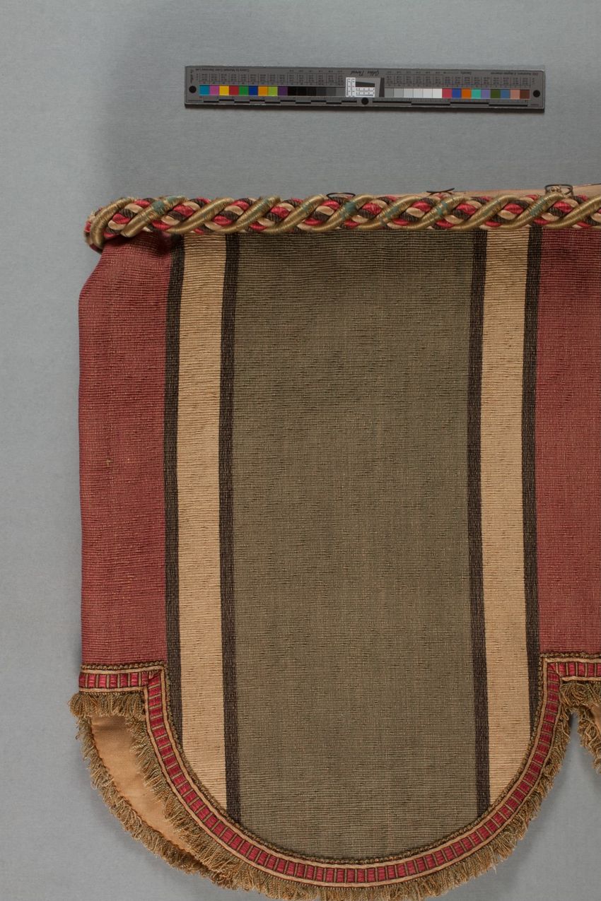 Golden bookshelf with three shelves, containing eight books made of paper with green, red, blue, black, brown, or purple covers.