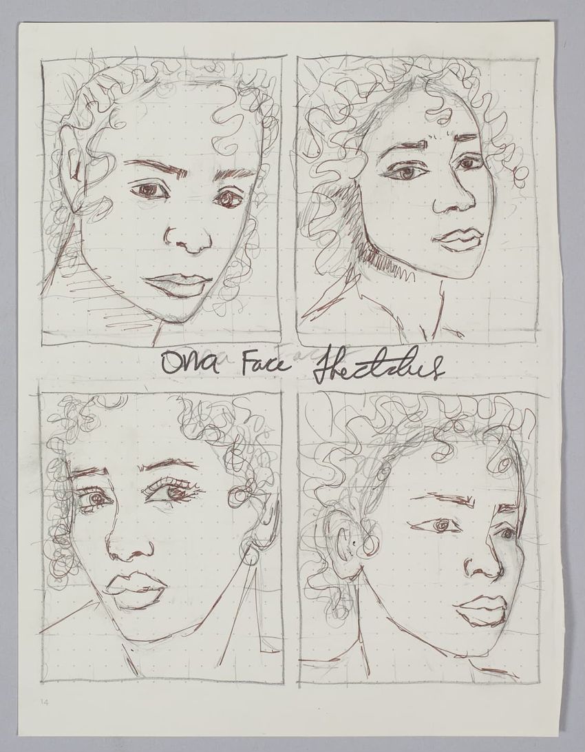 Preliminary sketch for "Ona Judge Staines" portrait by Maya Michaud.