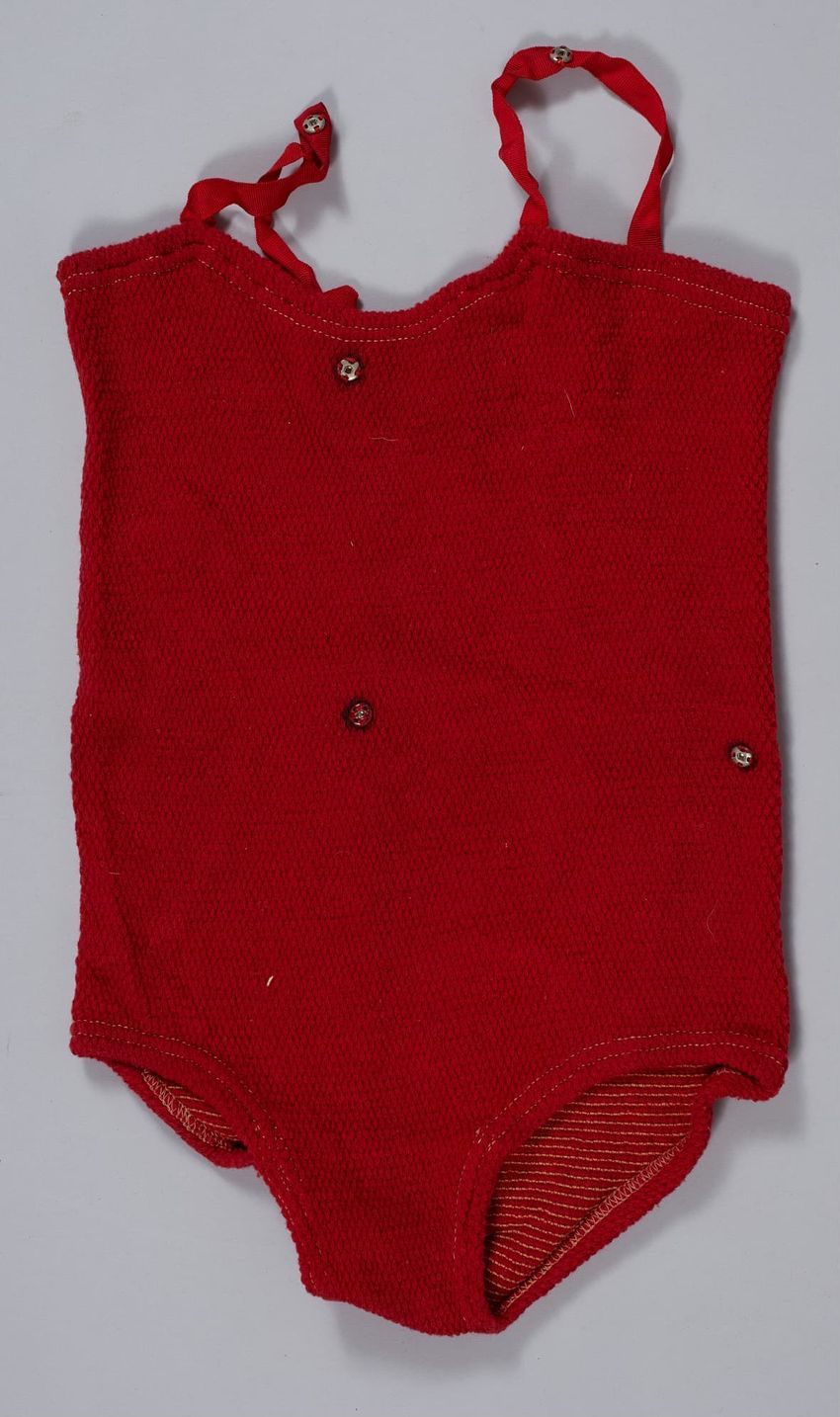 A child's red knit leotard.