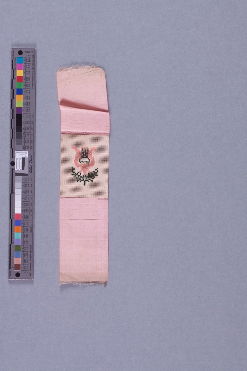 Philco Highboy, Model no. 95. Exterior veneered paneling with fleur-de-lis on both sides. Double doors open up to display radio dial, contraols, speaker, and embroidered "tapestry" scene depicting trees, covering the speaker.