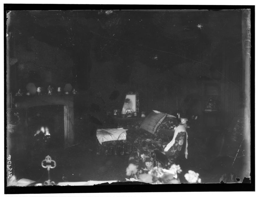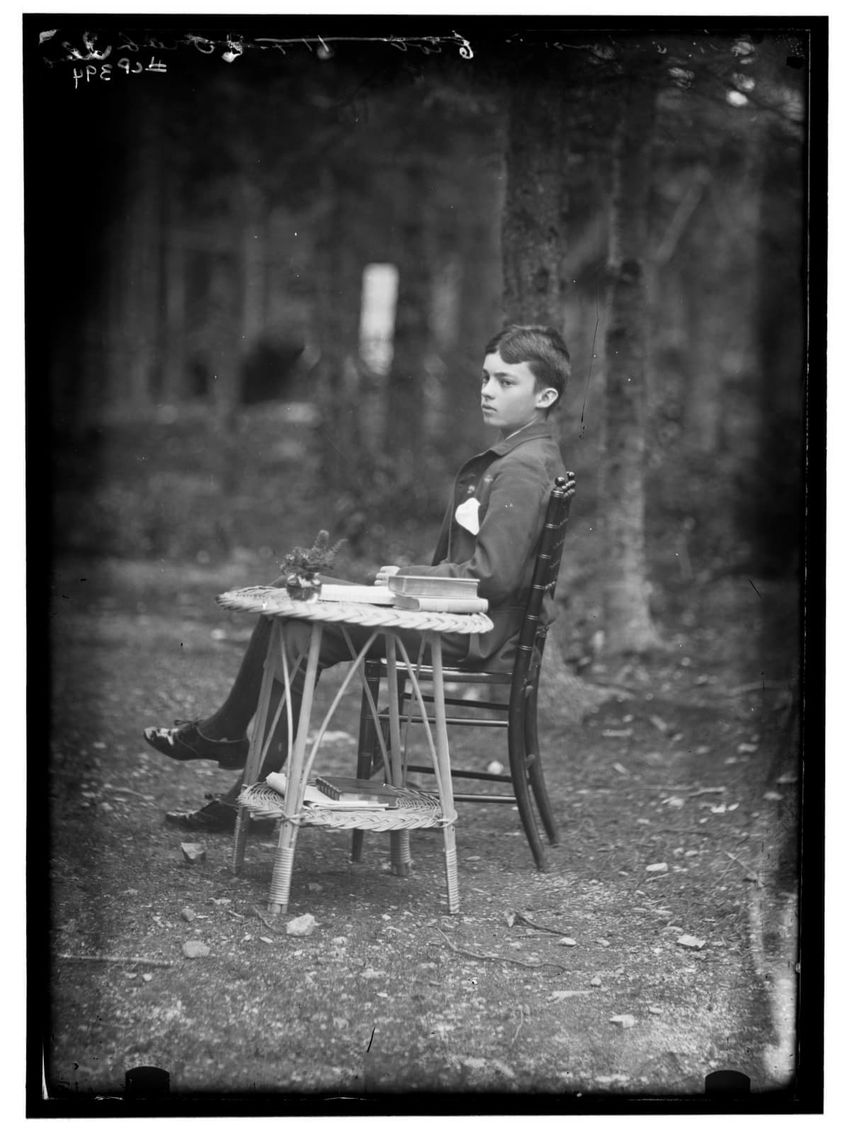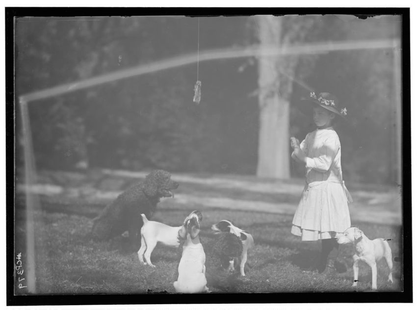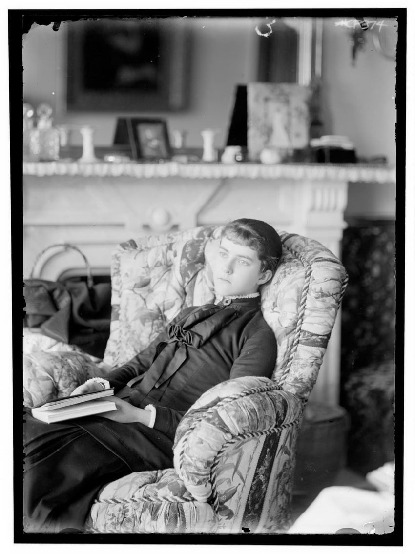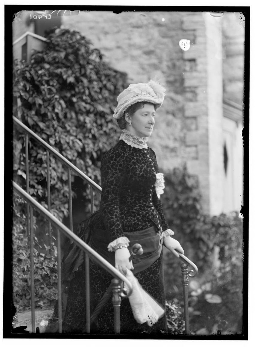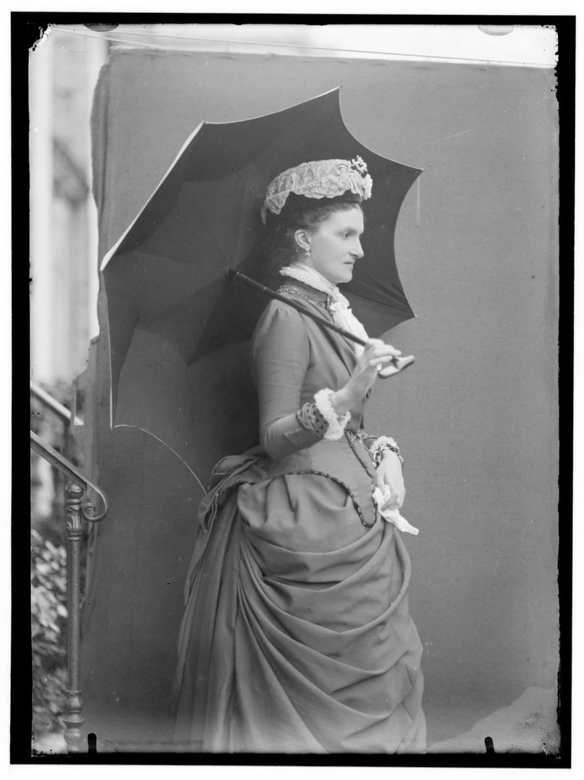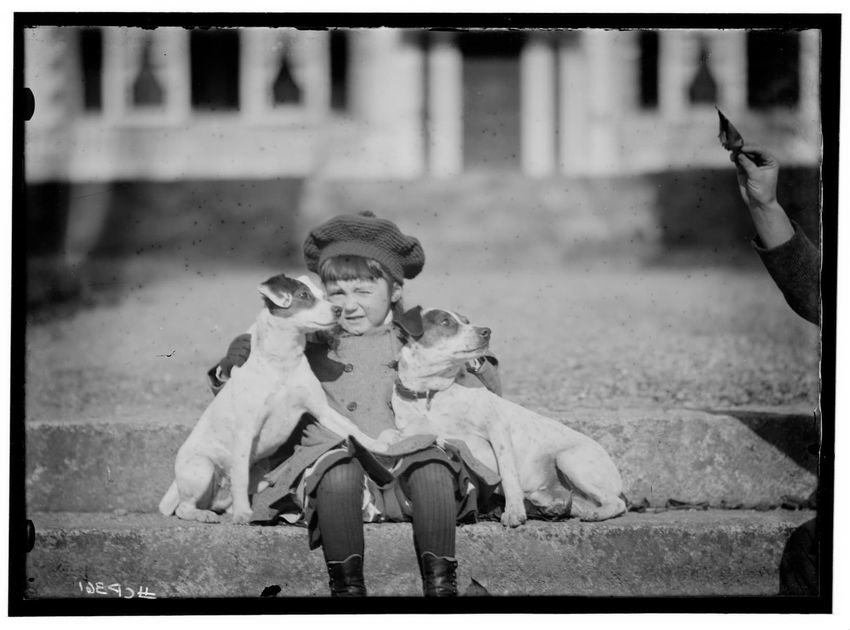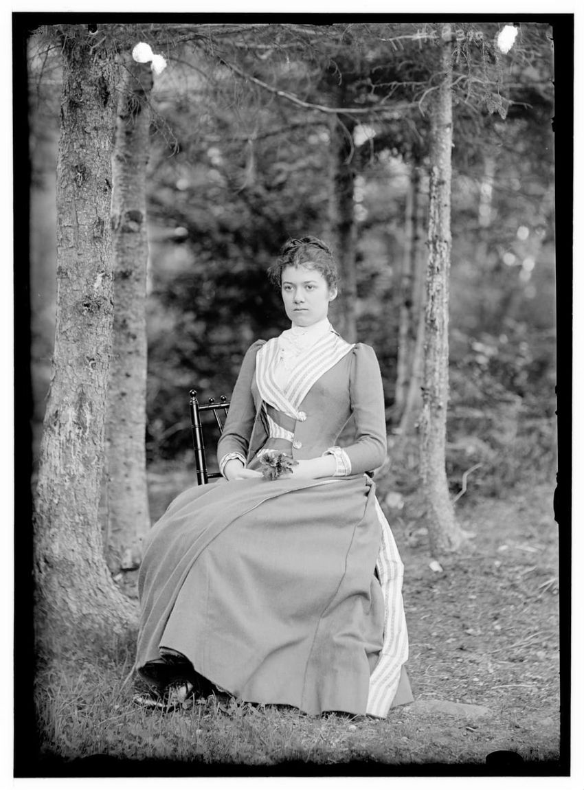 The image is a group portrait featuring two women, a man, and a young girl seated together. The man and women are dressed in dark clothing, and the women are wearing head coverings. The girl, seated in front, wears a dress with striped accents.
