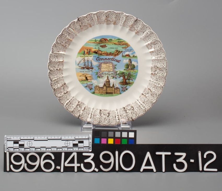 Souvenir plate depicting the ship Bethel. Brown transfer print.
