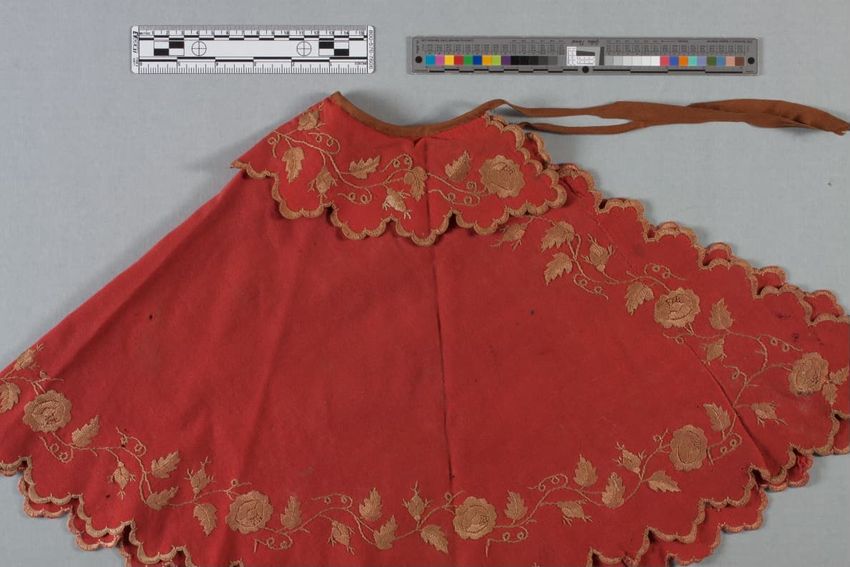 Wedding ensemble worn by Lura Burgess Woodside (1887-1982), who married Charles Hadley Watkins (1886-1957) in 1910. Ensemble includes: Ivory colored silk charmeuse wedding dress [.1a] with long sleeves, lace cuffs, beading on bodice, and weighted hem; lace petticoat [.1b] made of silk taffeta; pair ...