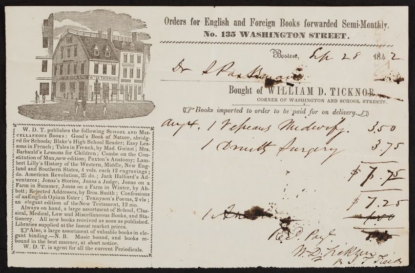 The card text reads "Choice new text-books and helps for nearly every branch of school and college work." The publisher has additional offices in New York and Chicago.