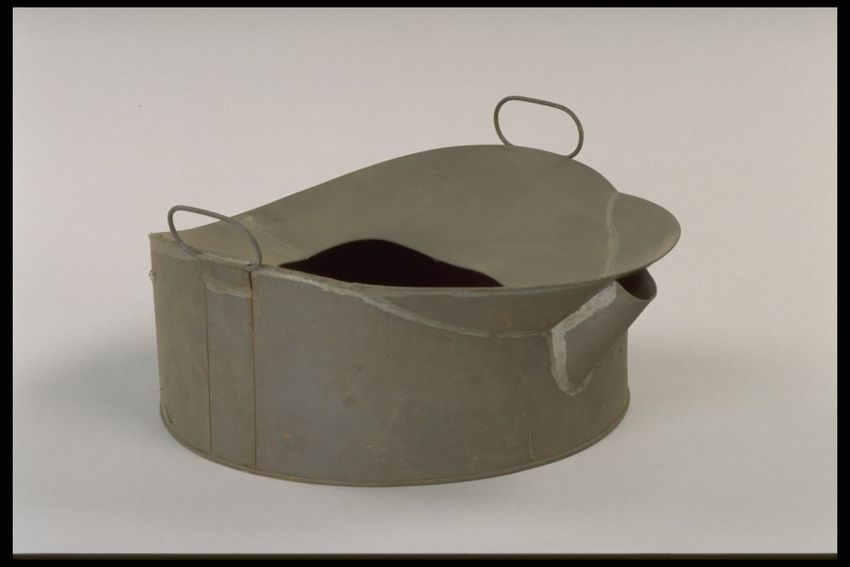 carving (processes), painting (coating), tin (metal), wood (plant material)