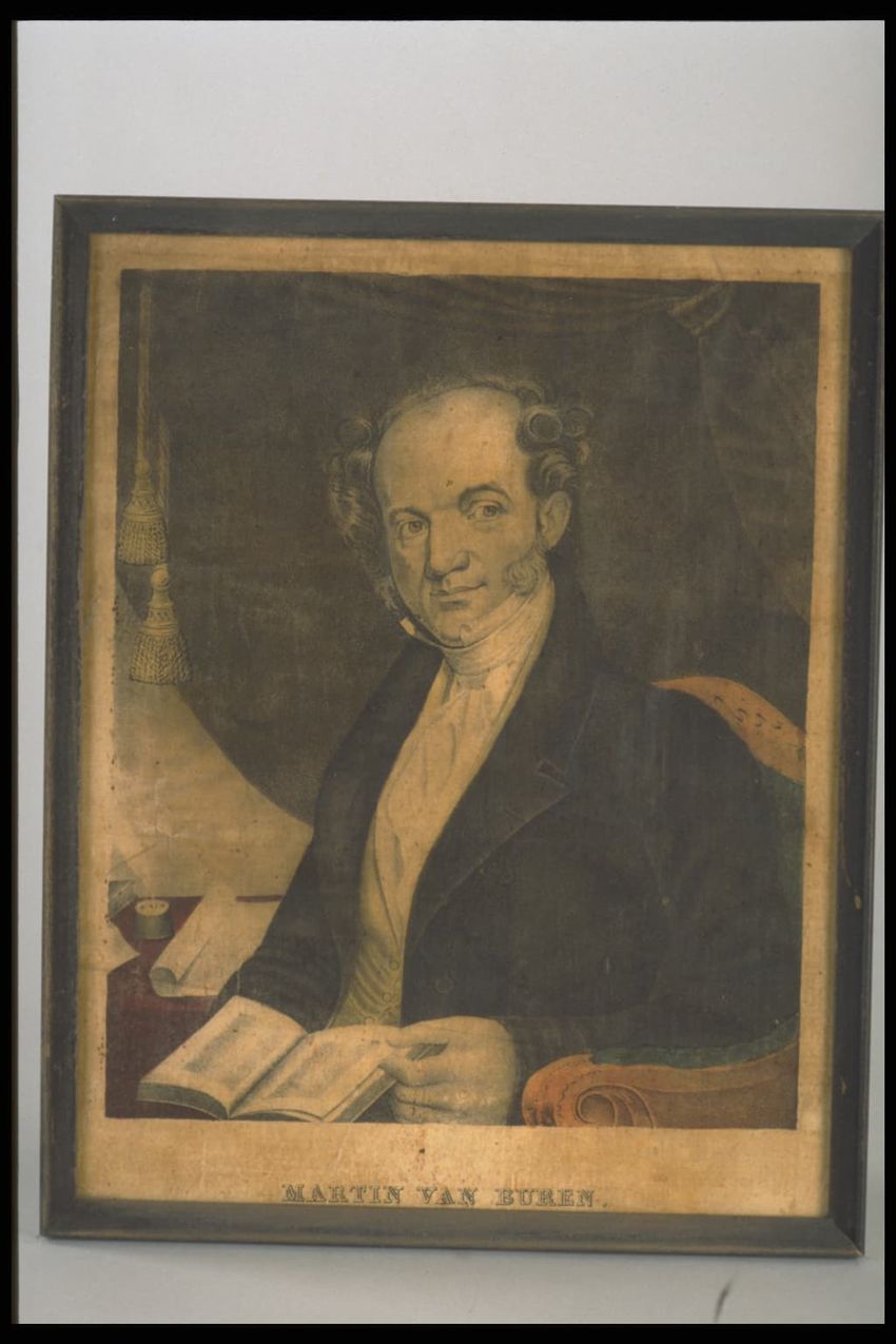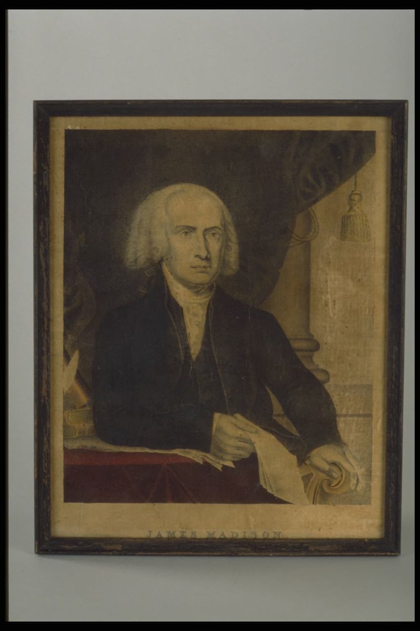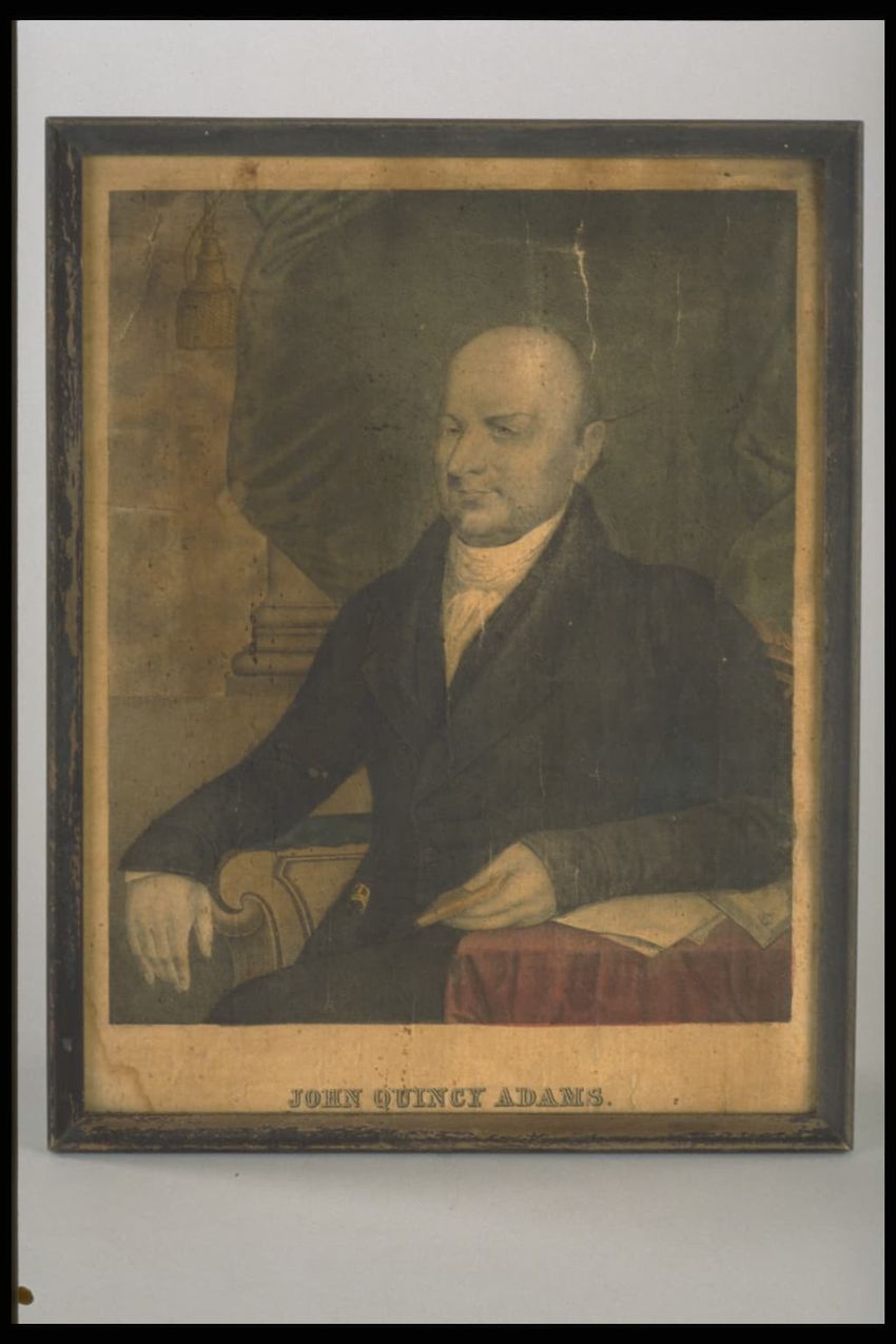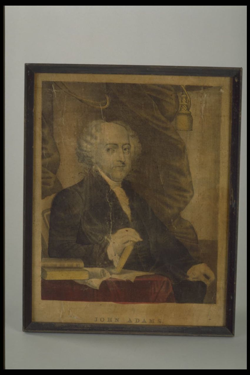 Portrait of John Adams. One of a set of lithograph portraits, half-length, of first eight presidents, each identified in lower margin. Shallow molded black frames (American King series).