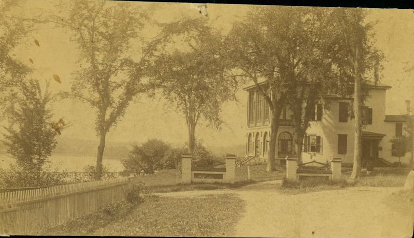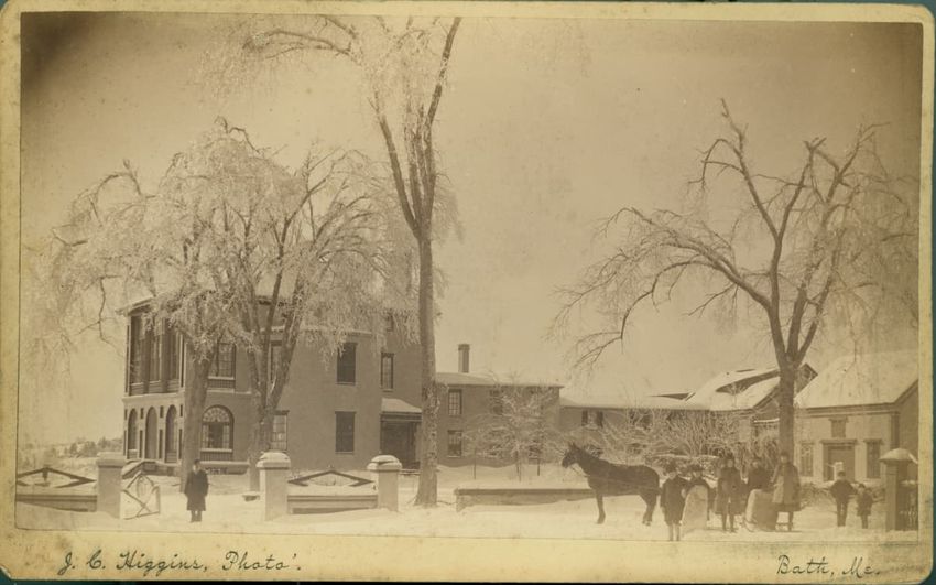 A Chestnut Street image which looks west from River Street, towards the embankment. This Beacon Hill scene contains commercial buildings, automobiles and a horse carriage. The business to the left, across from the horse-drawn vehicle, is Joseph Pink & Company a harness and saddlery concern that ope...