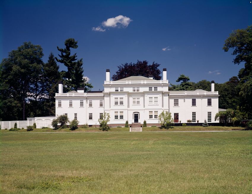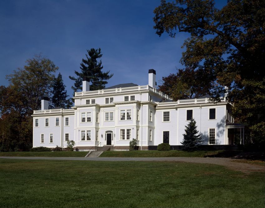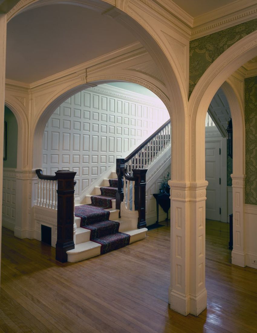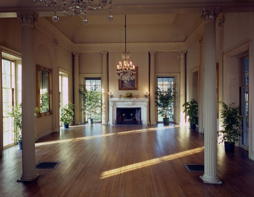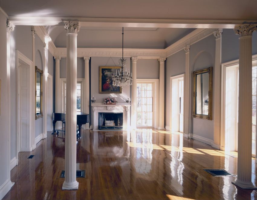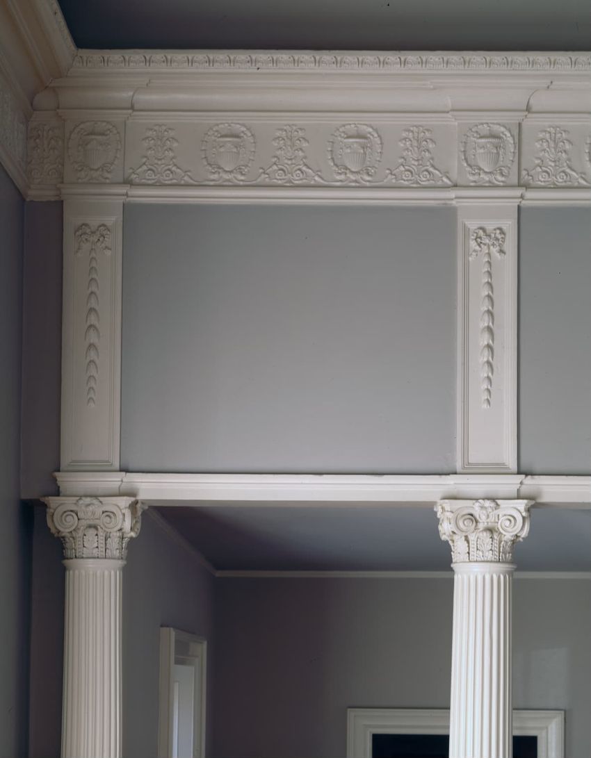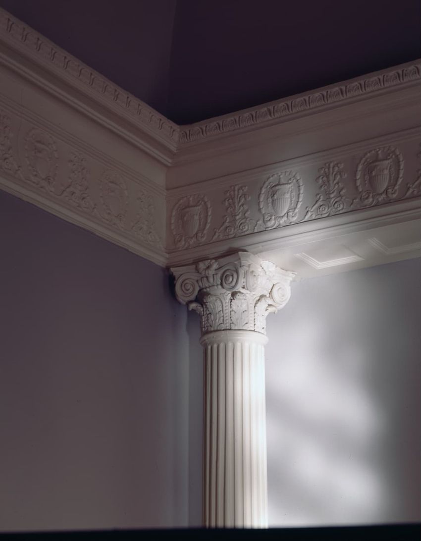 A detail view of a column in the ballroom of the Lyman Estate in Waltham, Massachusetts.