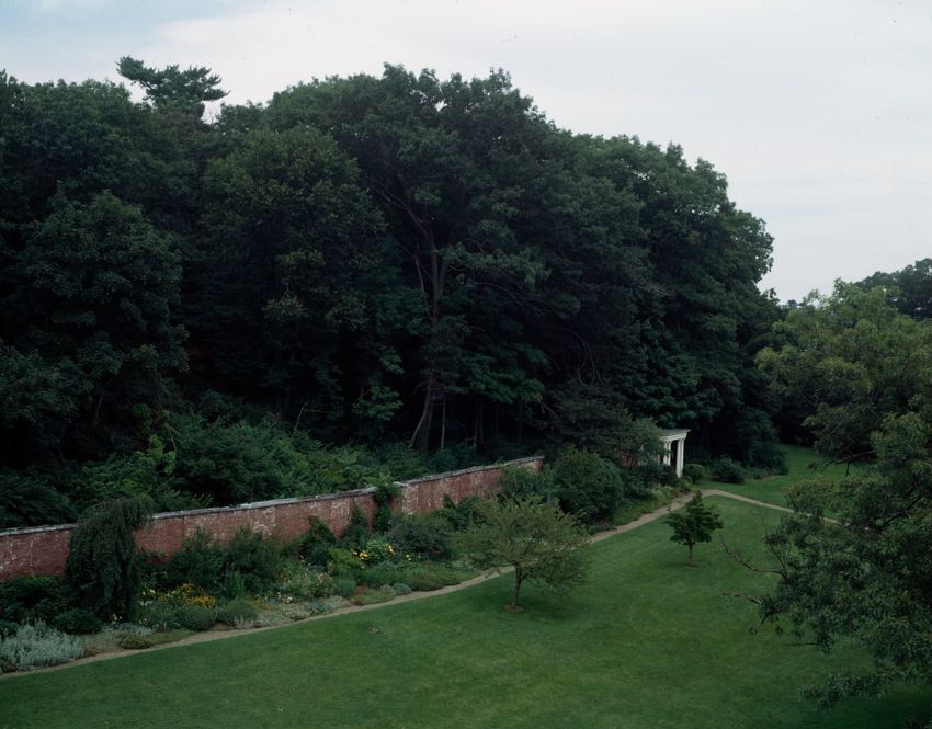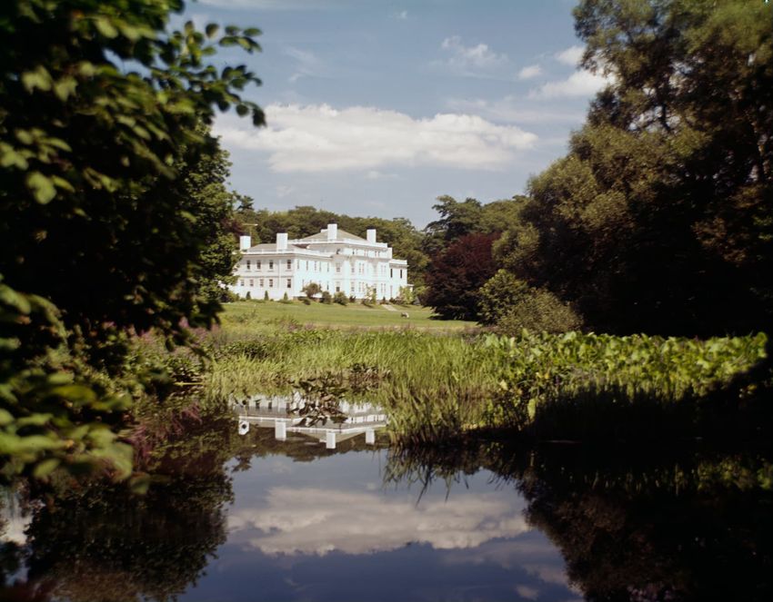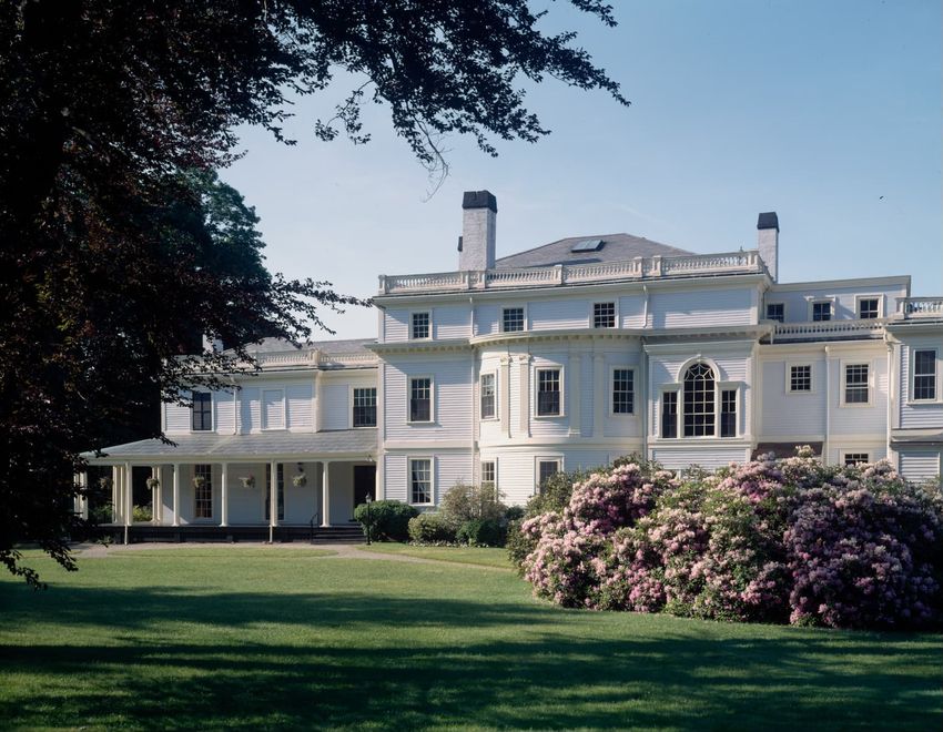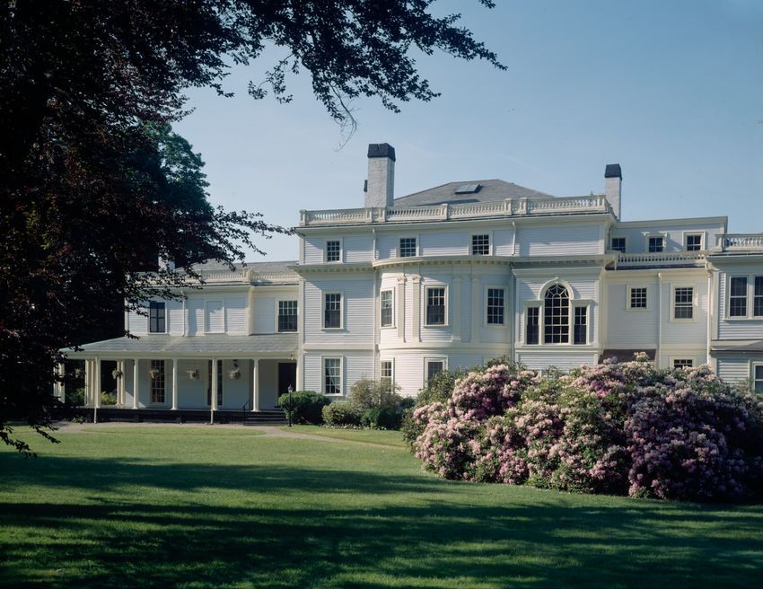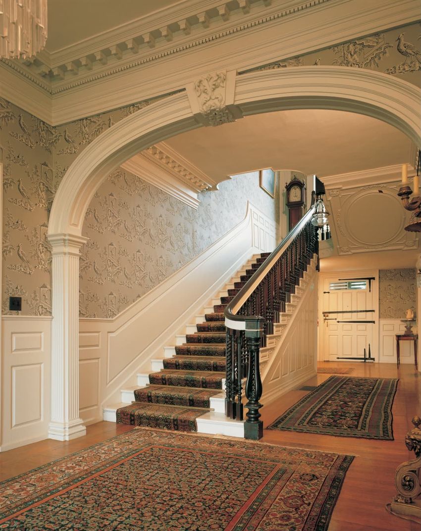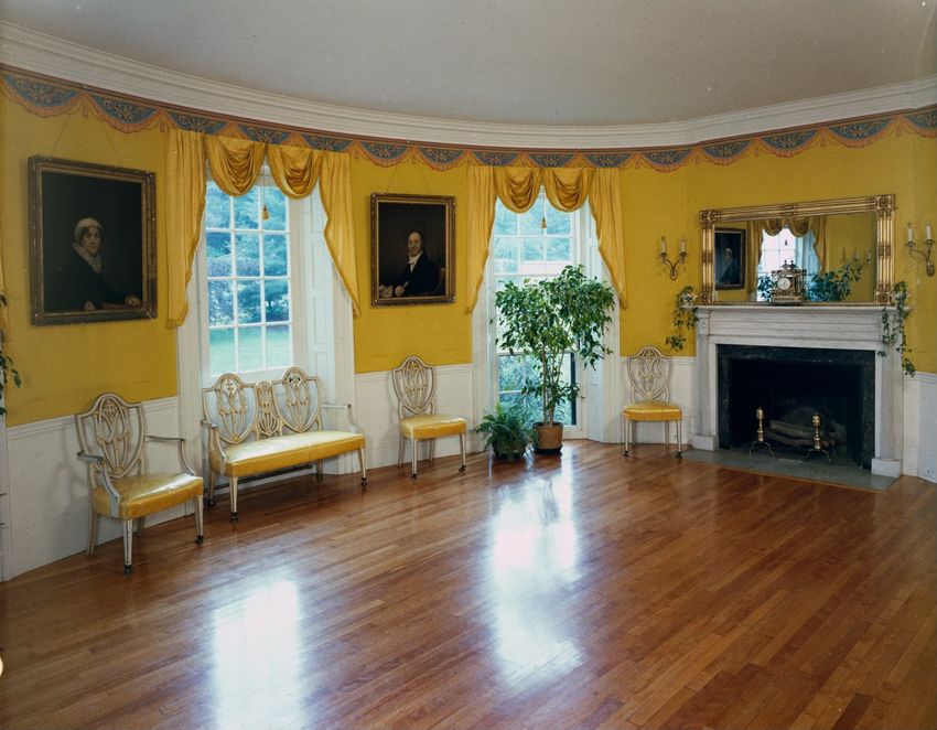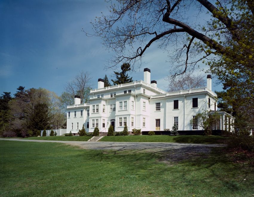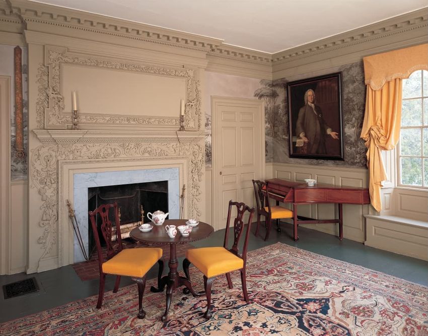 A detail view of a column in the ballroom of the Lyman Estate in Waltham, Massachusetts.
