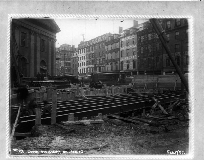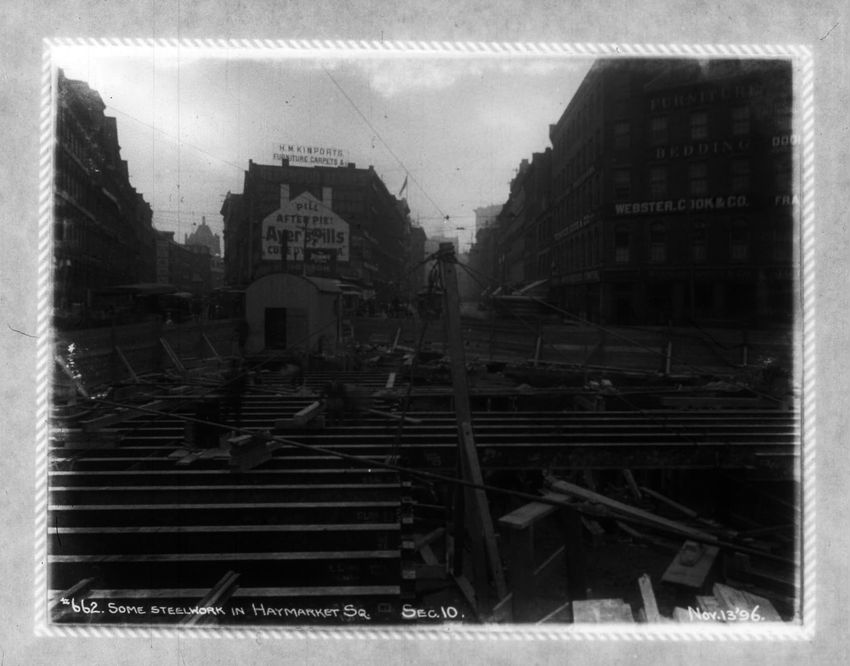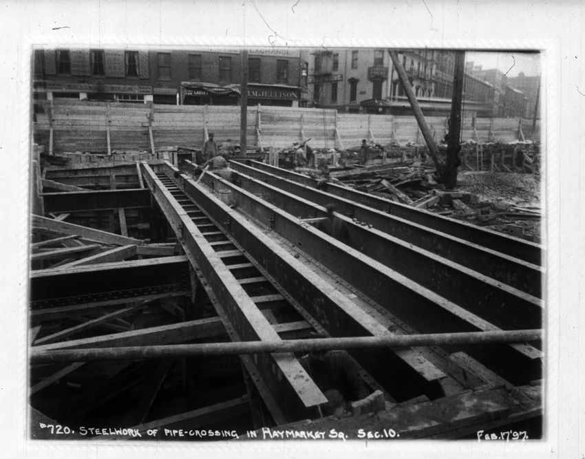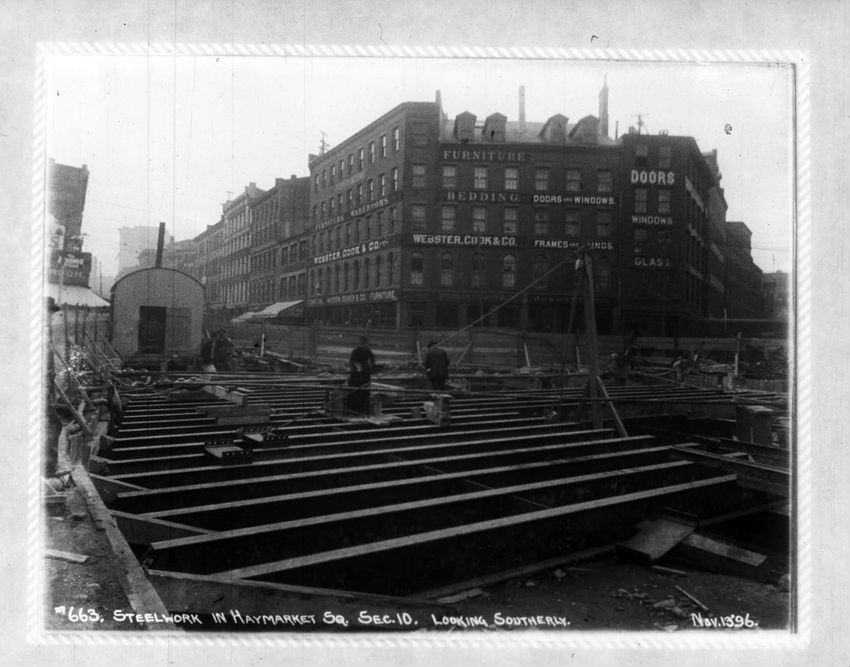 Steelwork in Haymarket Square, sec.10, looking southerly, Boston, Mass.