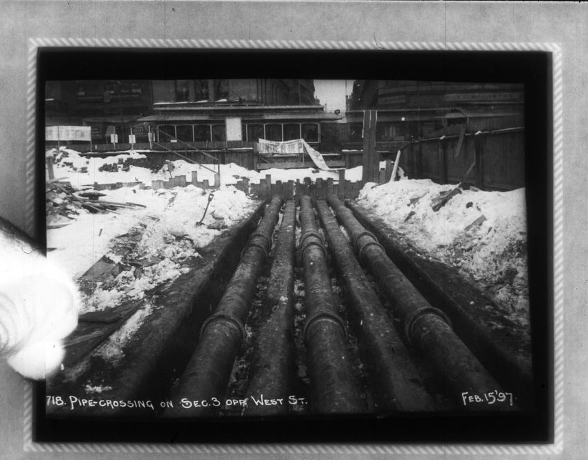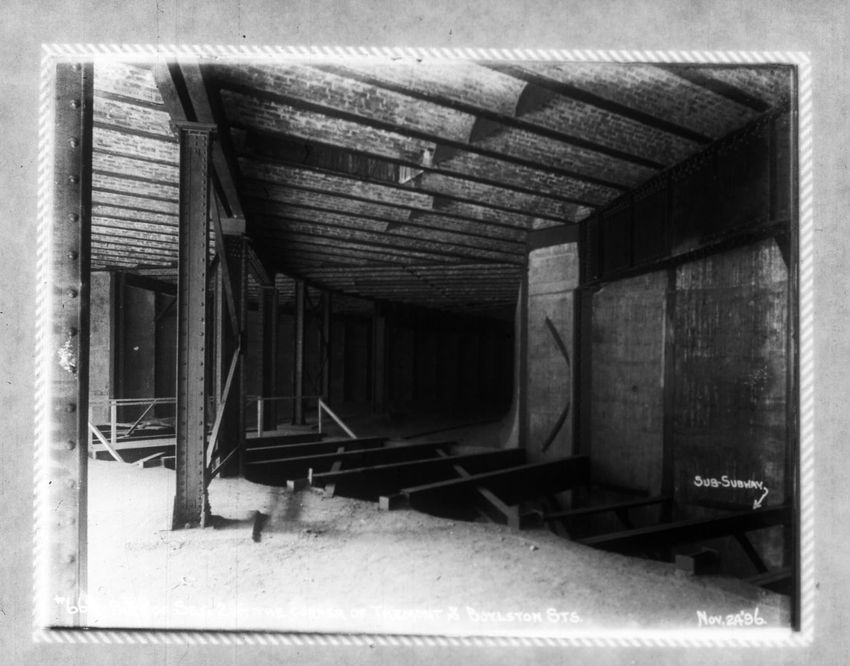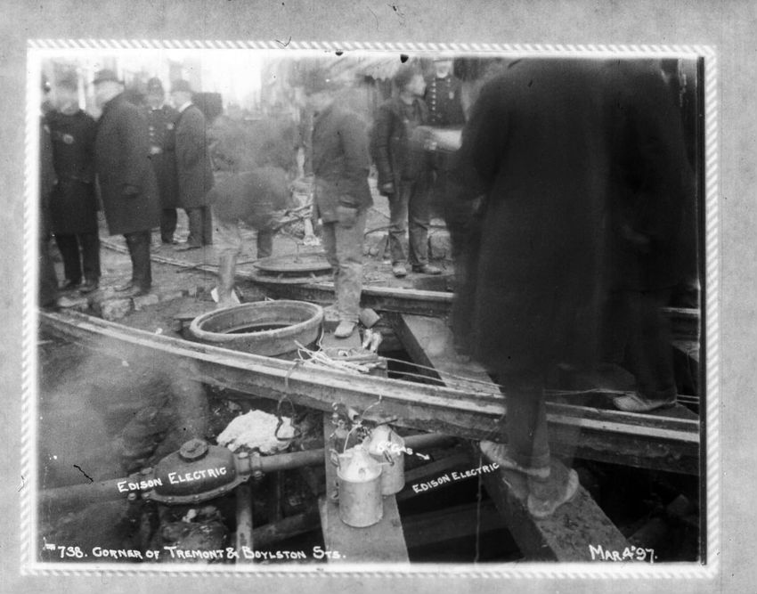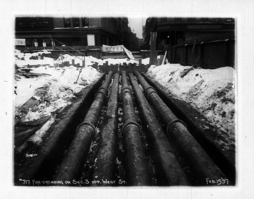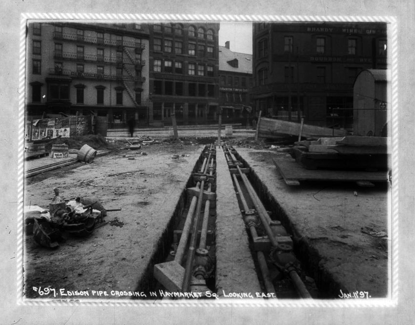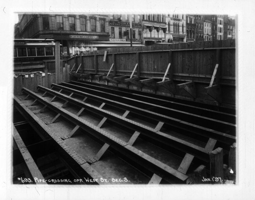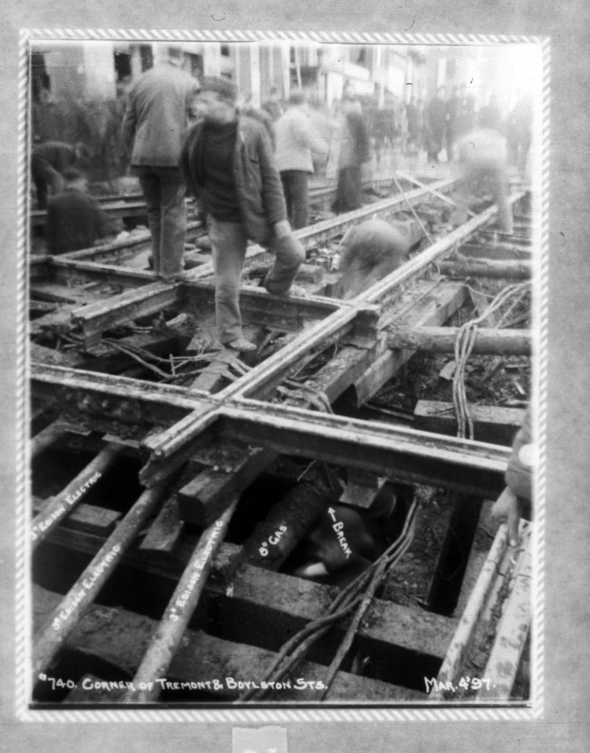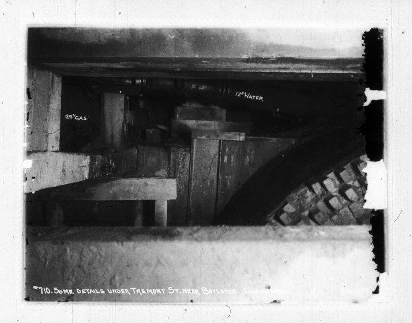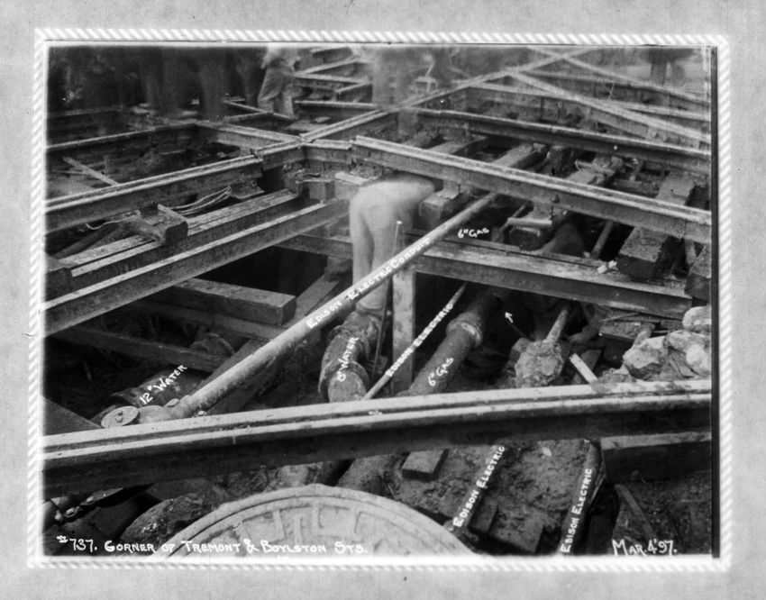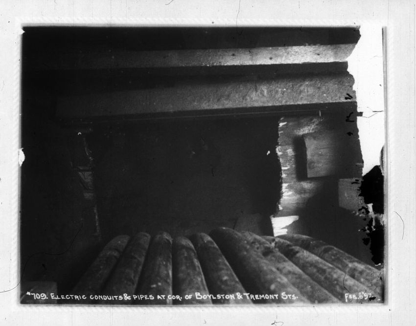 Electric conduit and pipes at corner of Boylston + Tremont Sts.
