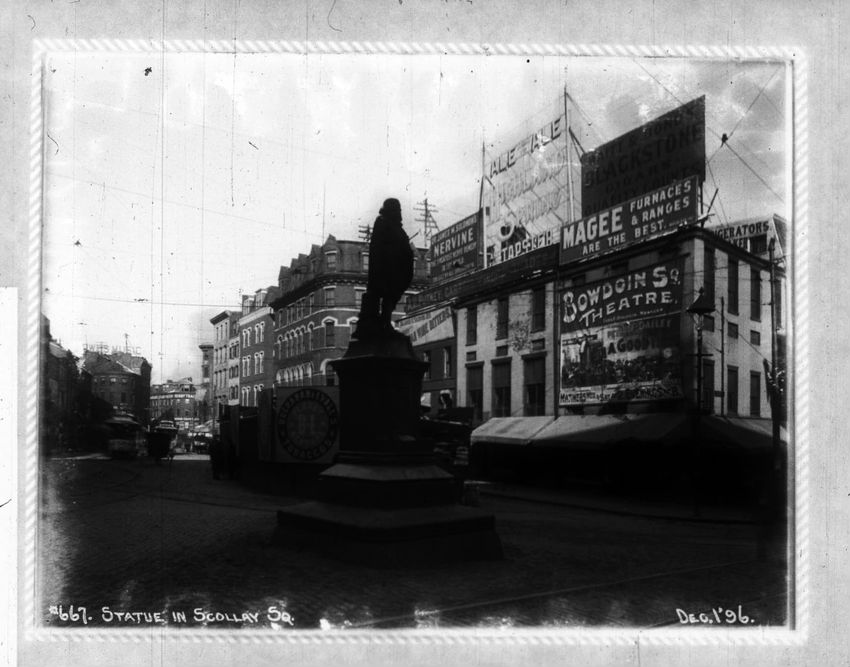 Statue in Scollay Square, Boston, Mass., December 1, 1896
