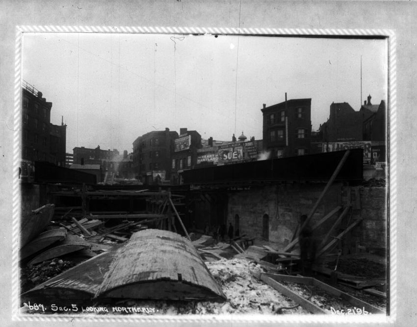 Excavation in Haymarket Sq., sec.10, looking northerly