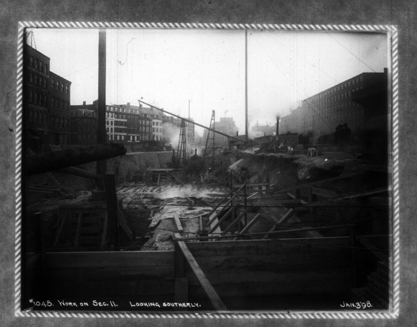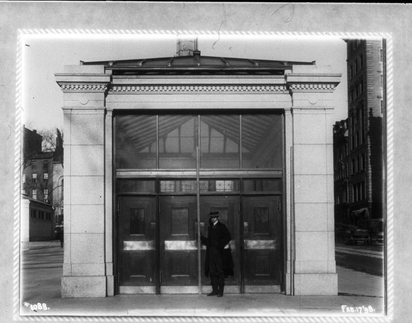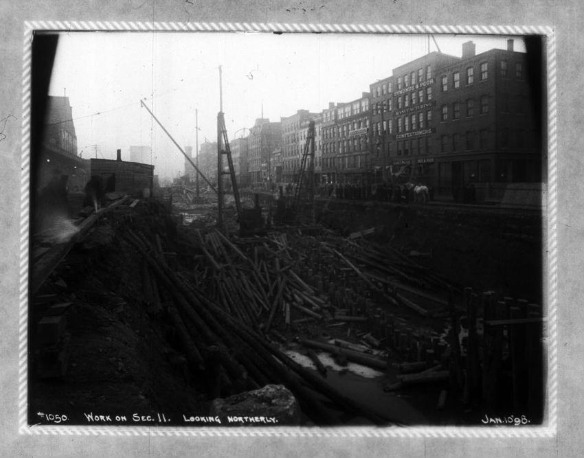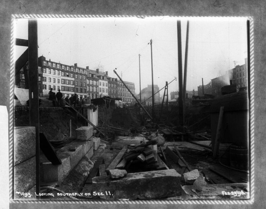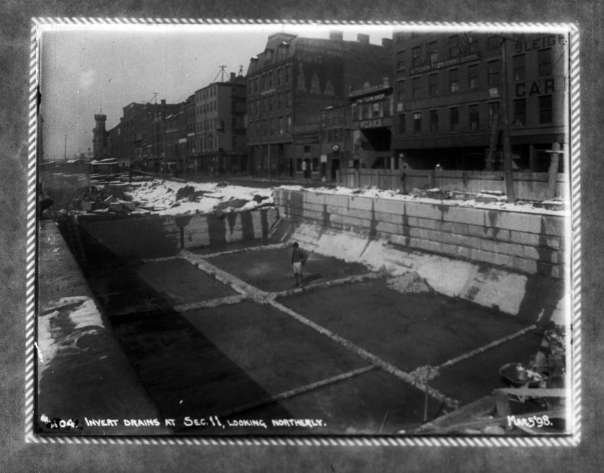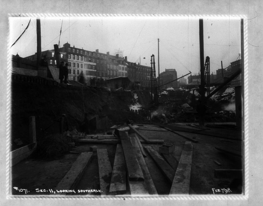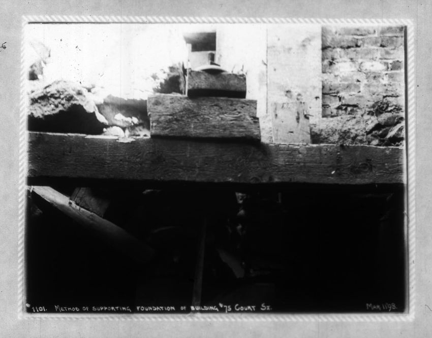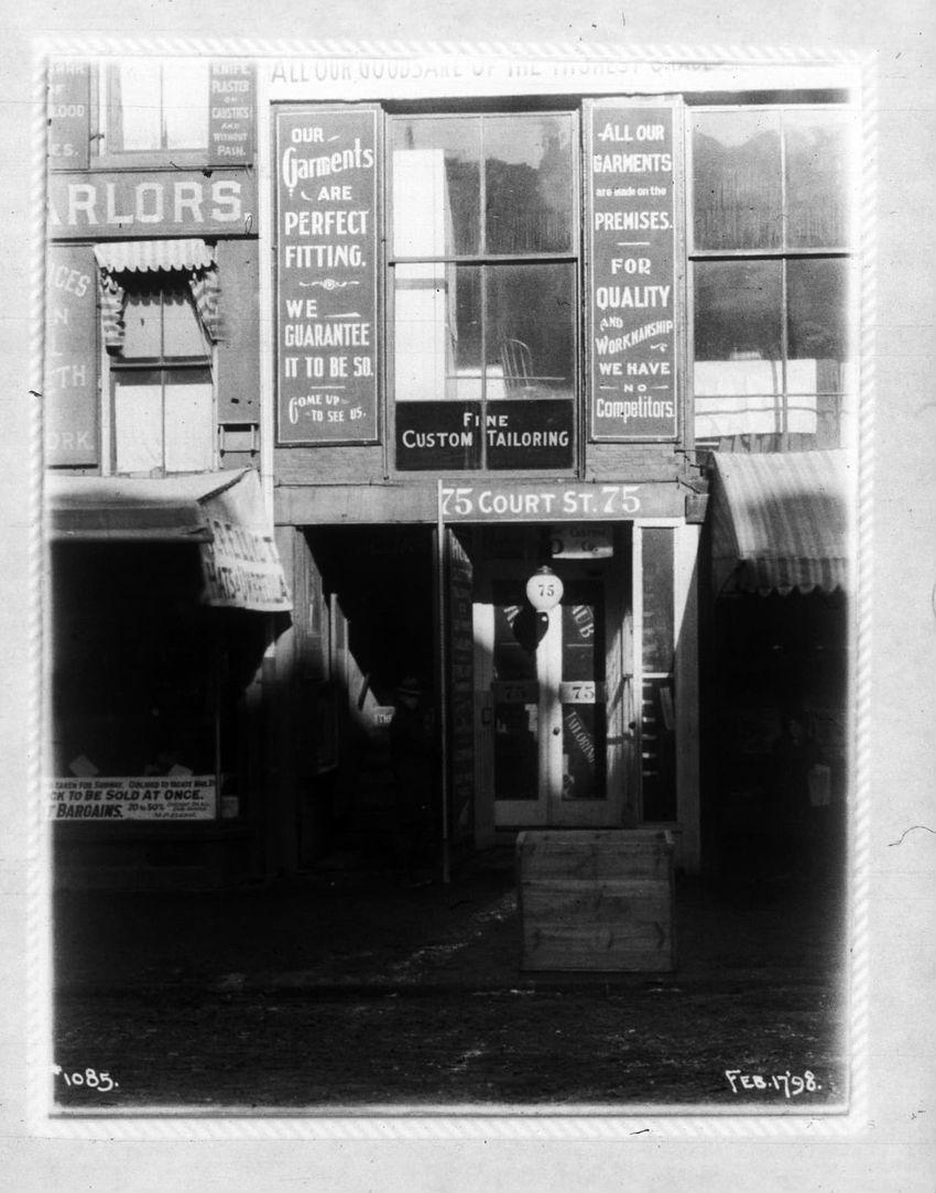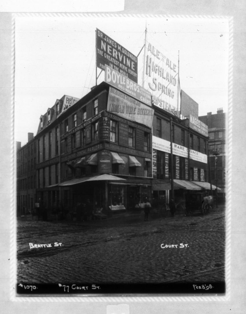 The Pond Piano Company storefront can be seen at 114 Boylston Street. The S.S. White Dental Manufacturing Company is above it. Alternate title: Walker Bldg. rod at 16'