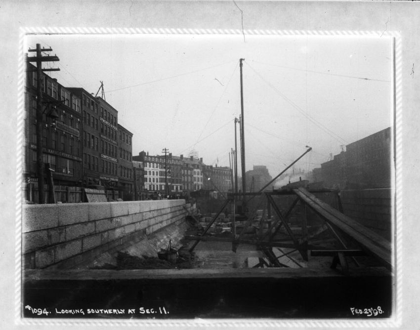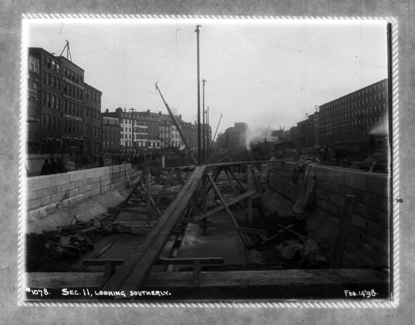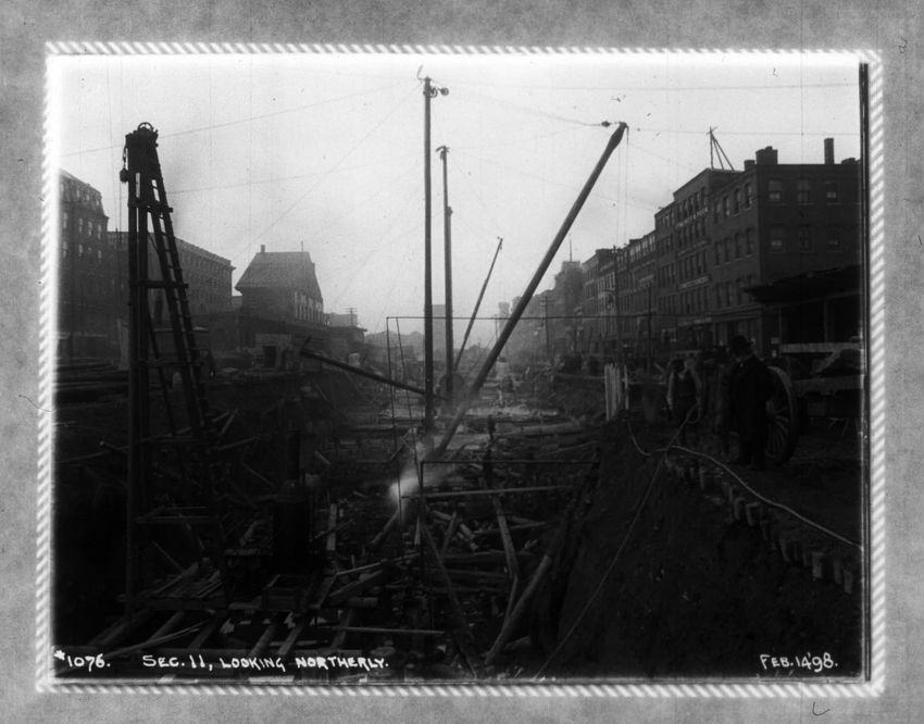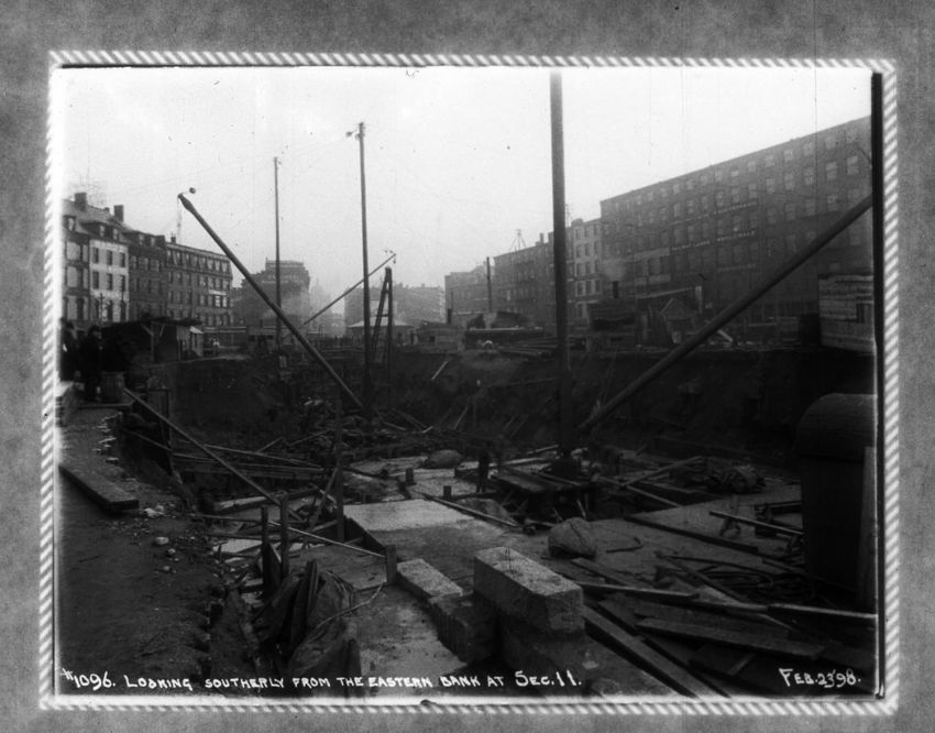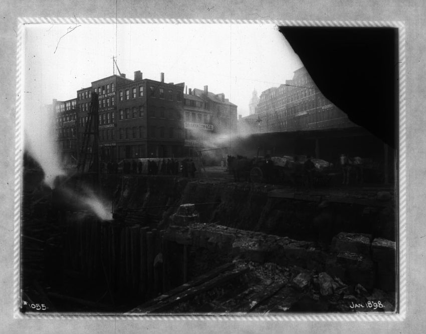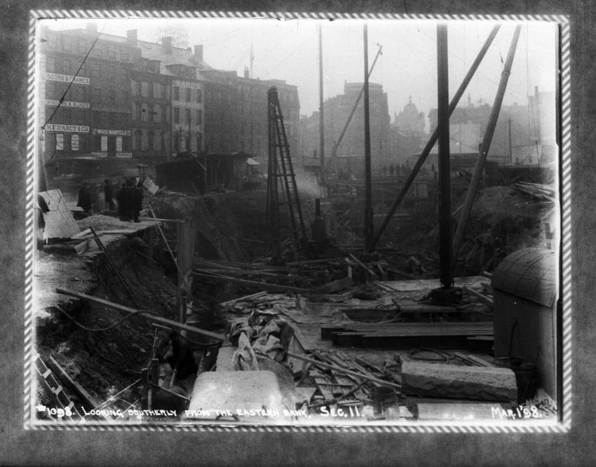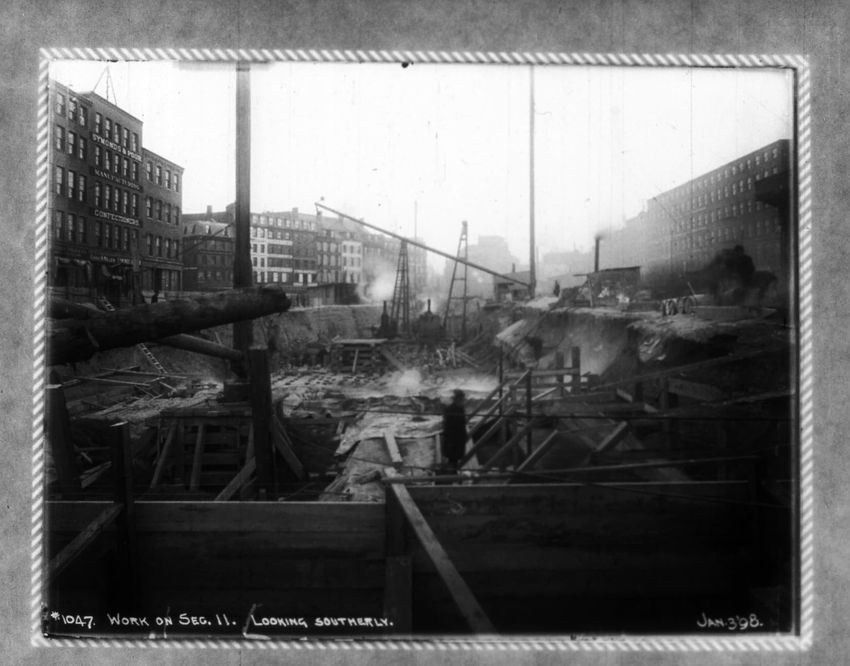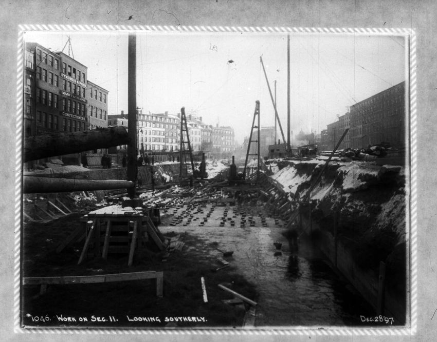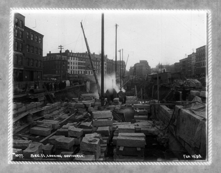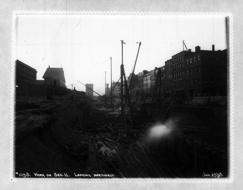 The Pond Piano Company storefront can be seen at 114 Boylston Street. The S.S. White Dental Manufacturing Company is above it. Alternate title: Walker Bldg. rod at 16'