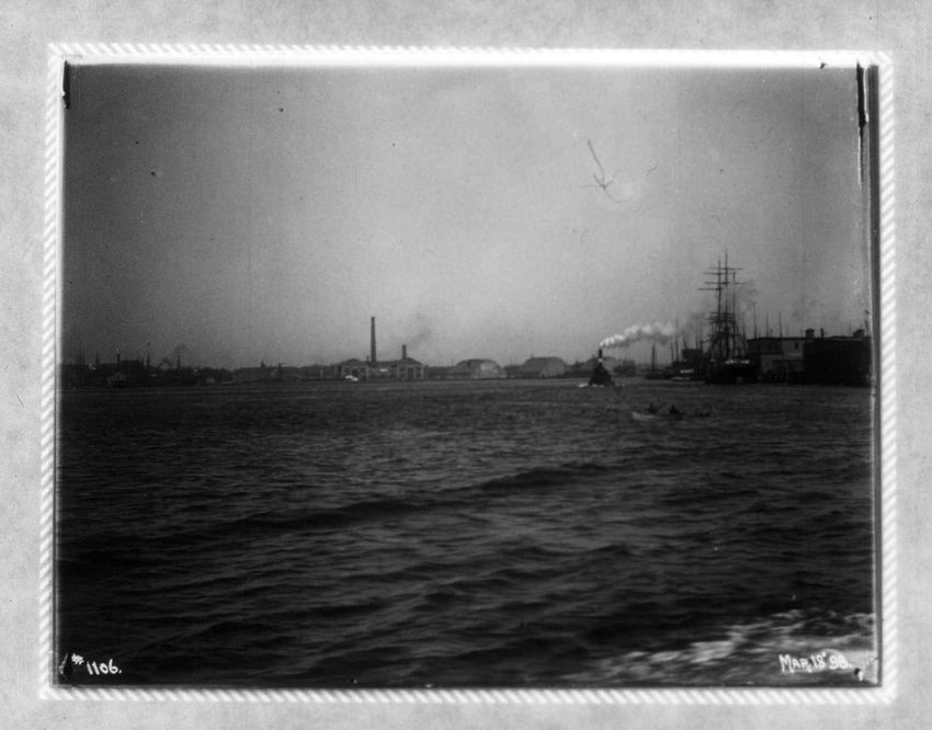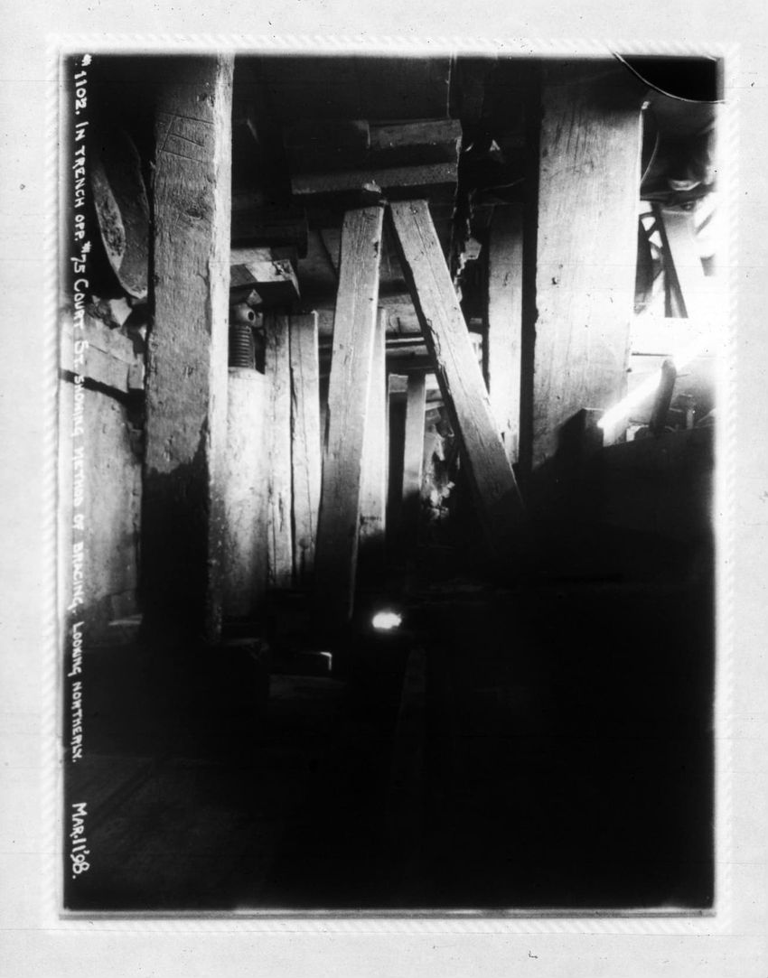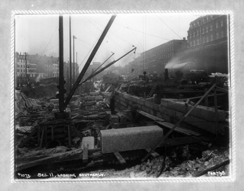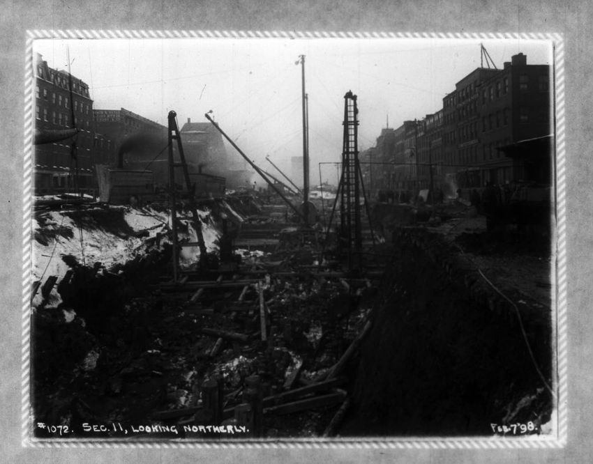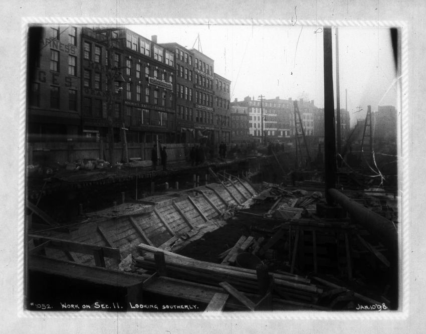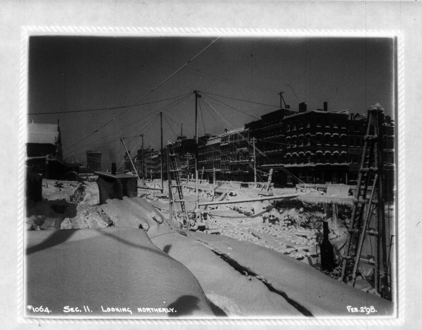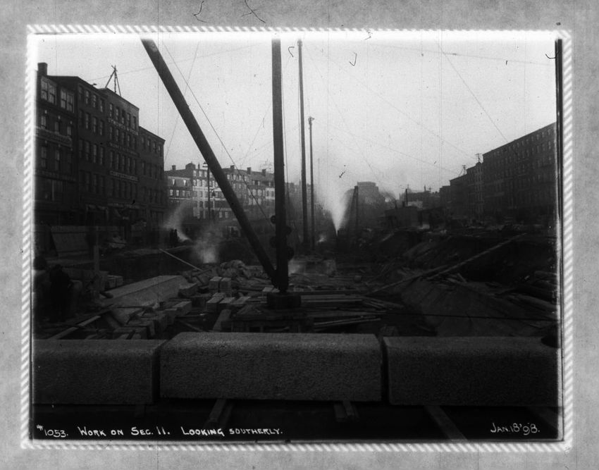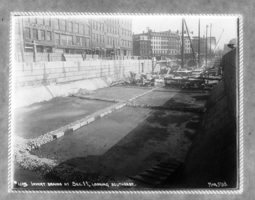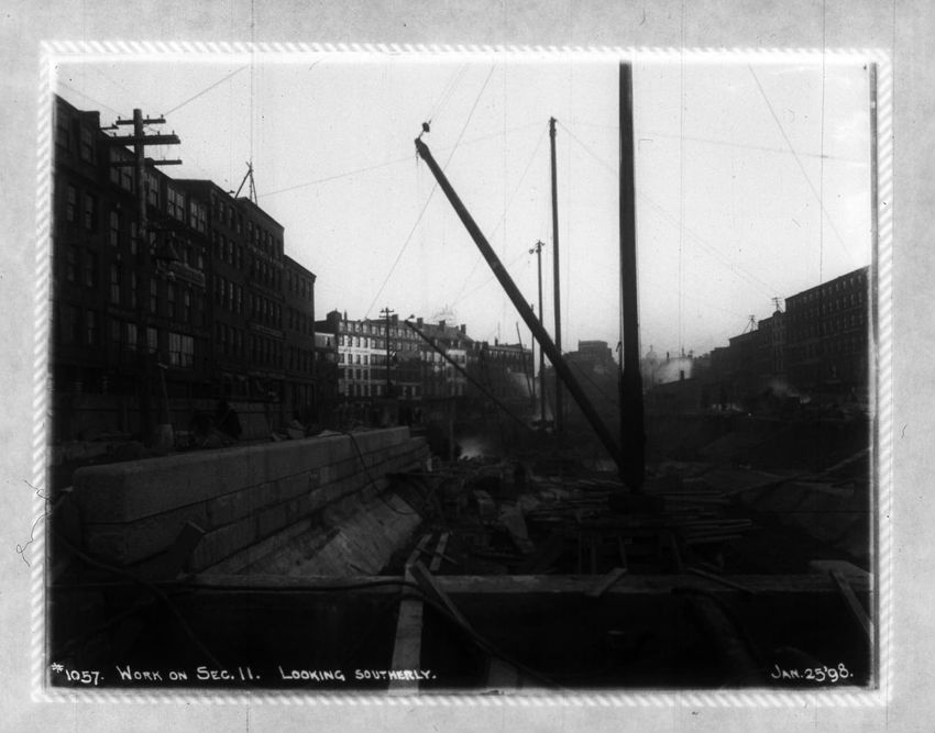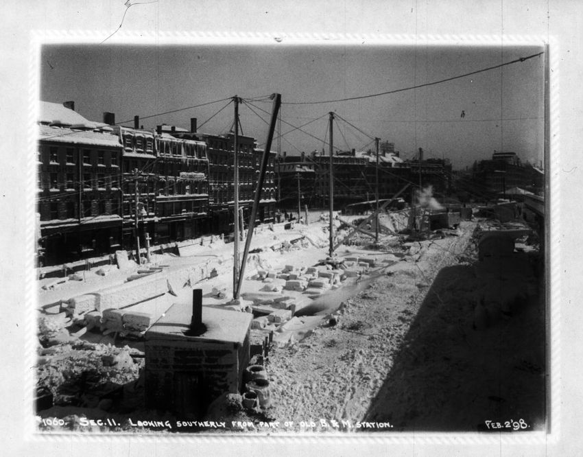 The Pond Piano Company storefront can be seen at 114 Boylston Street. The S.S. White Dental Manufacturing Company is above it. Alternate title: Walker Bldg. rod at 16'