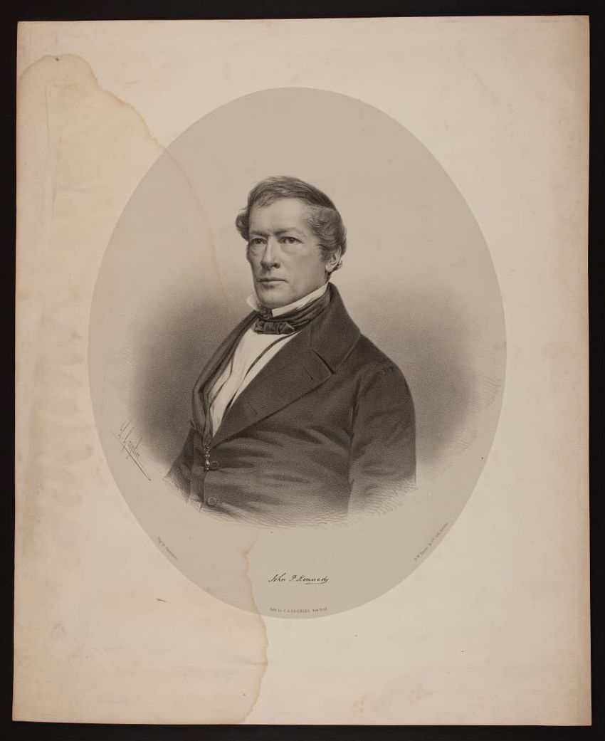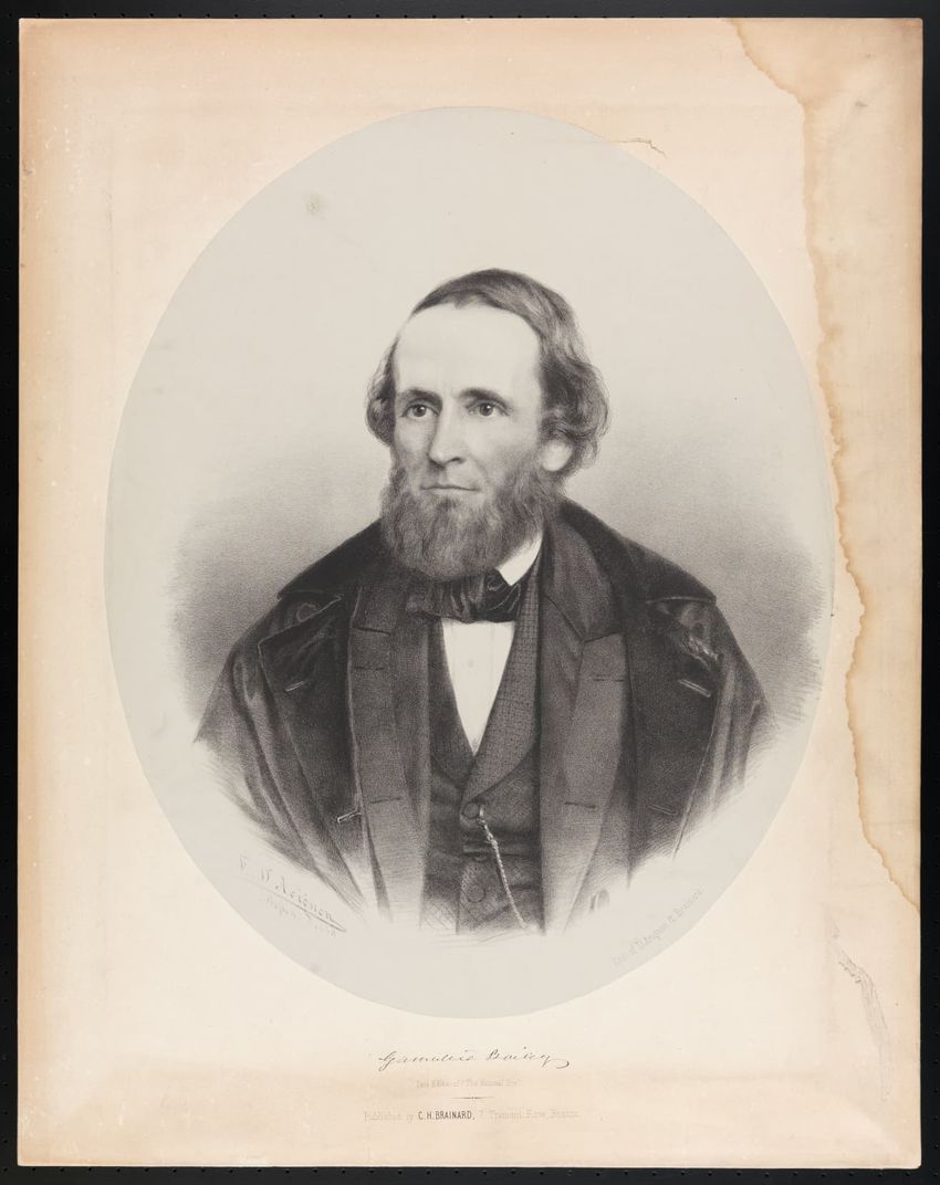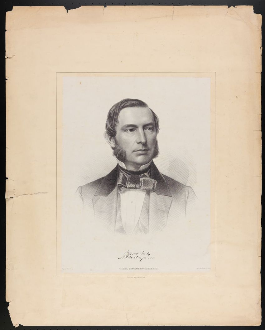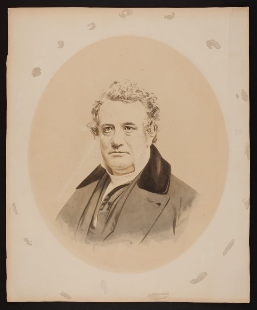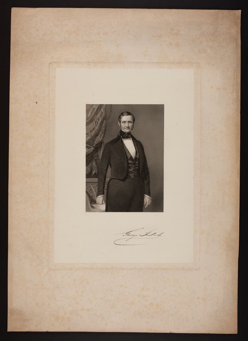 Portrait of the philanthropist and founder of the Peabody Institute in Baltimore, Maryland, George Peabody. Peabody was born in South Danvers, now Peabody, Mass.