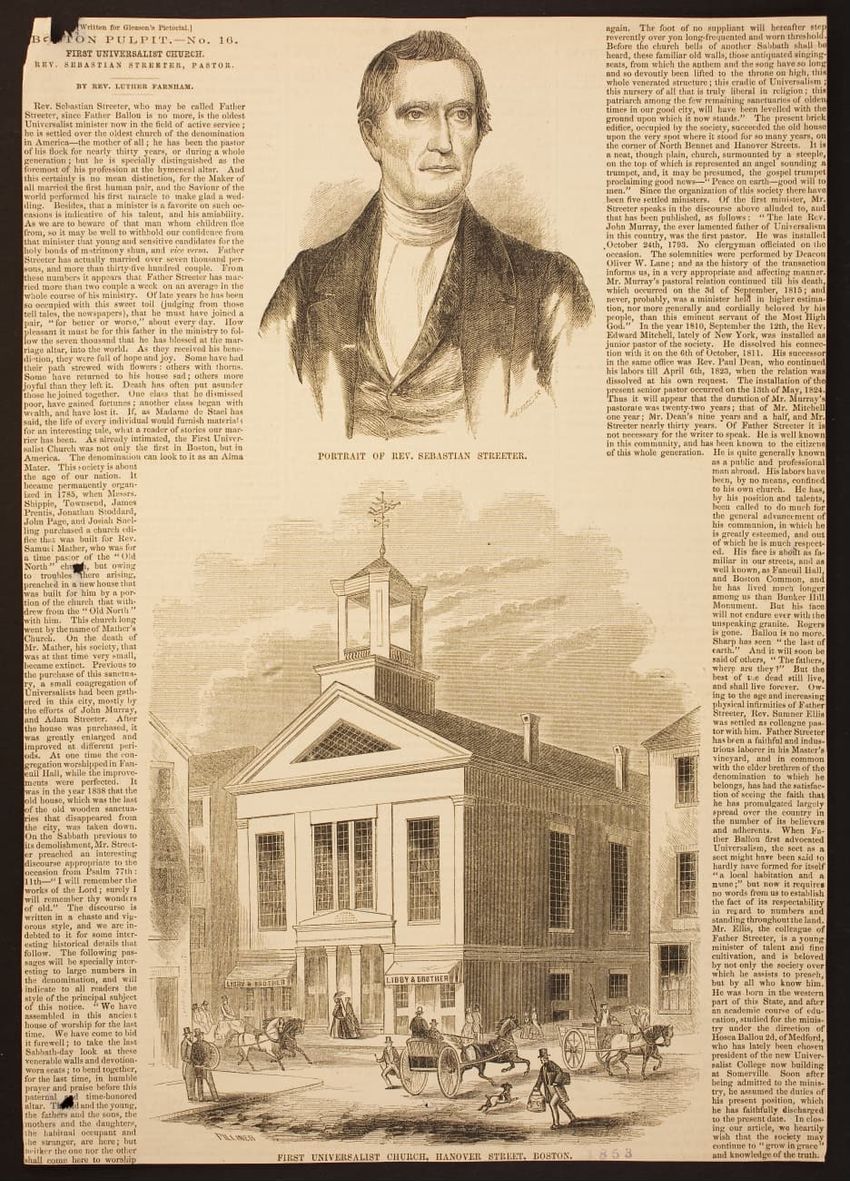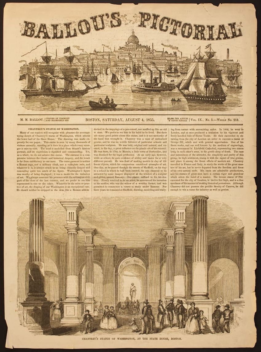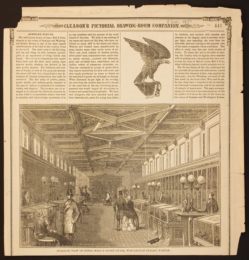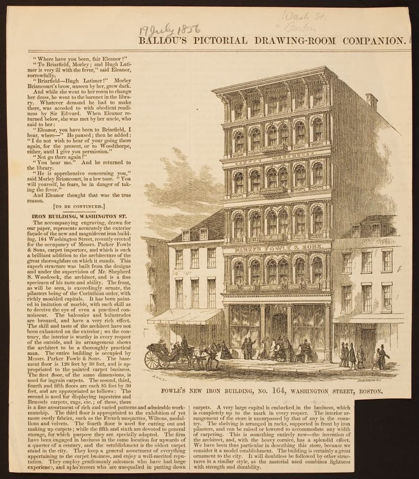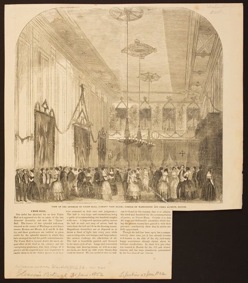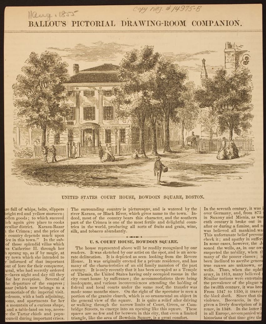 "The celebrated house represented in the above cut is one of the best near the Old Cradle of Liberty, in the city of Boston. We can hardly refrain from inserting the view so tastefully got up, which a friend gave us the other day, and after a personal inspection of the interior arrangements, and an...