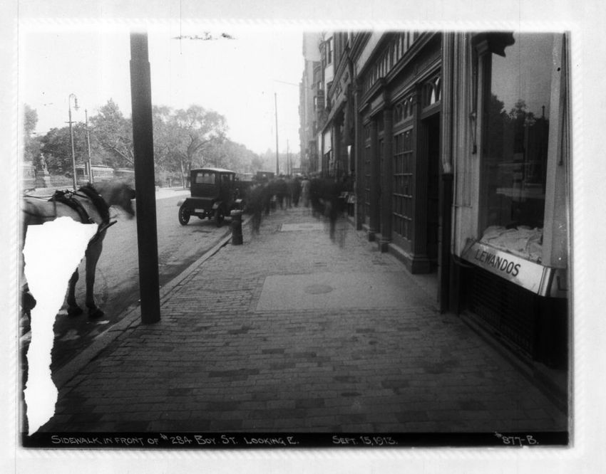 Lewandos clothing store can be seen on the right side of the image at 284-286 Boylston Street.