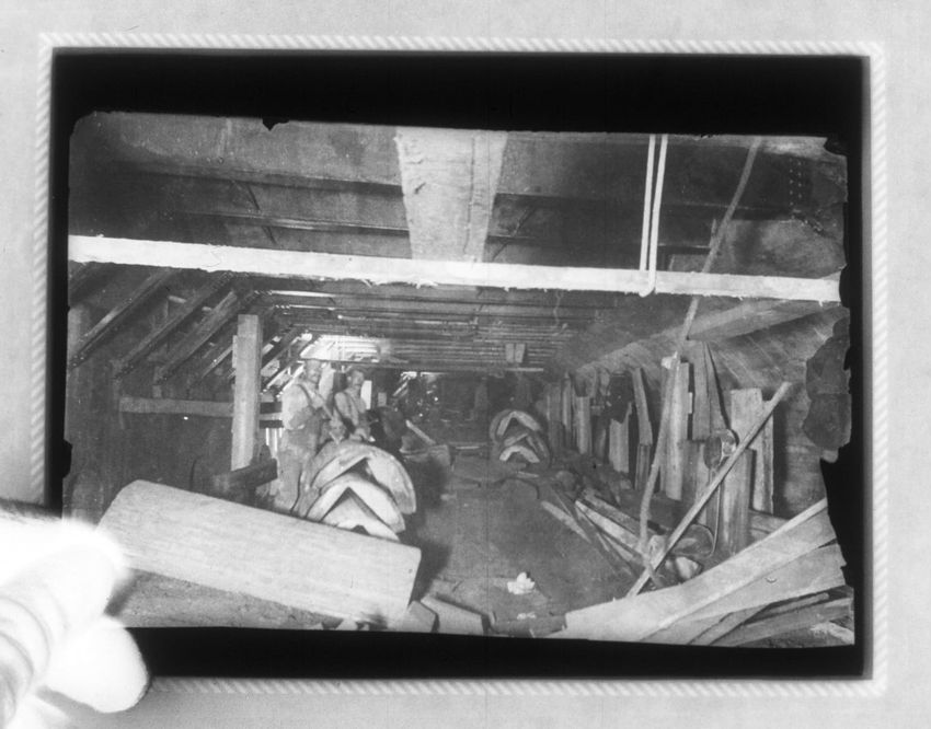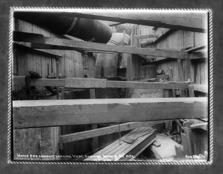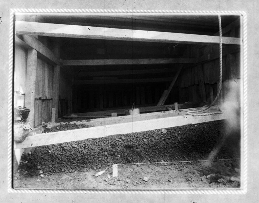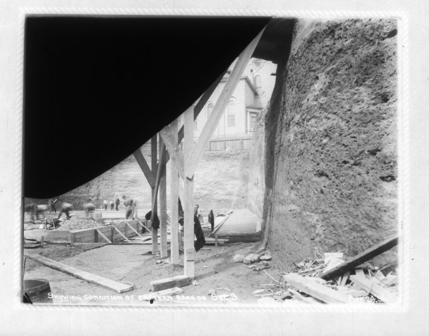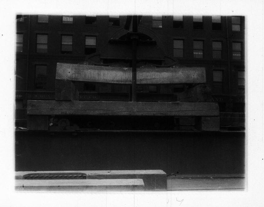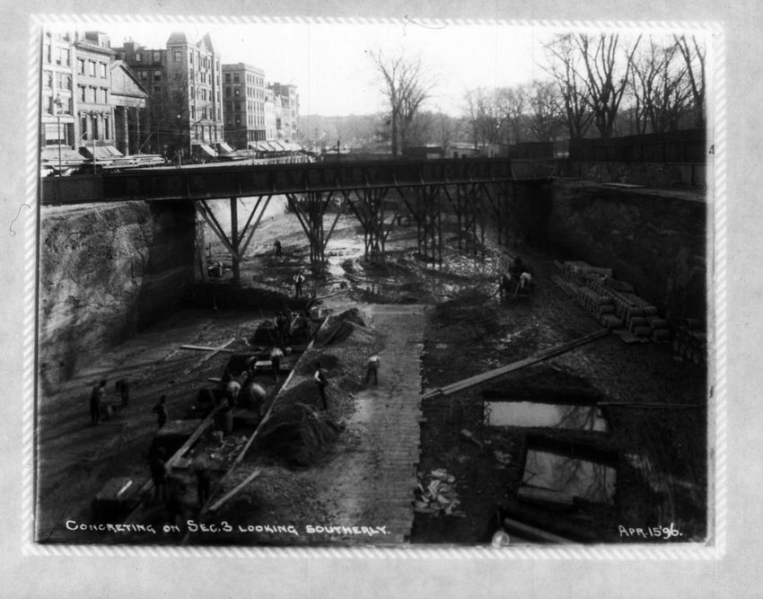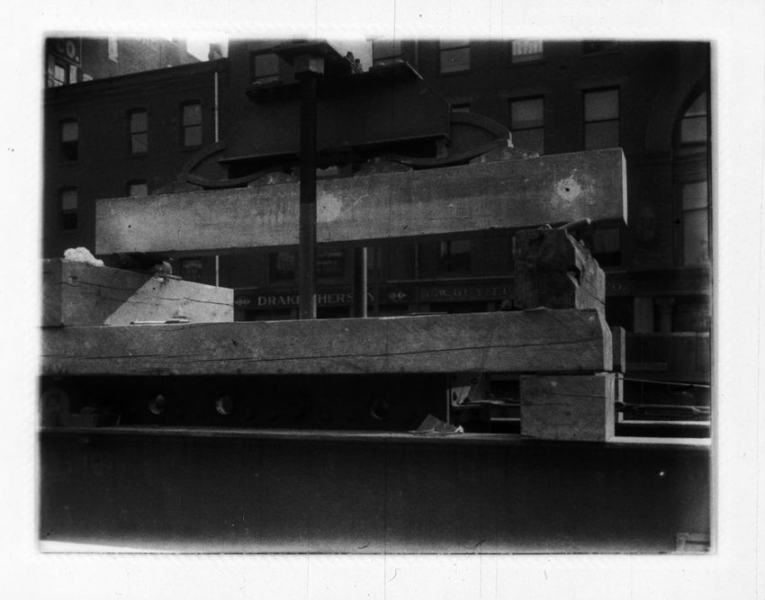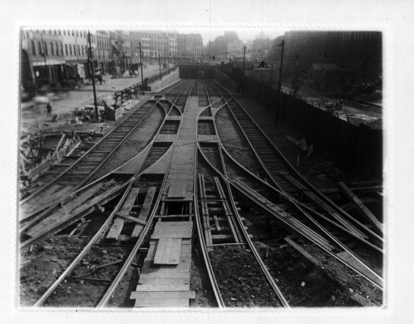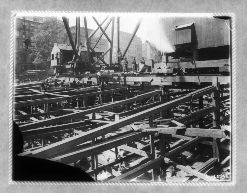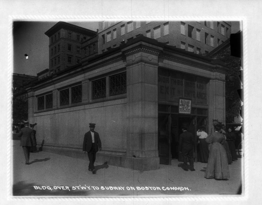 A subway construction site on Tremont Street, across from King's Chapel, is seen in the image.