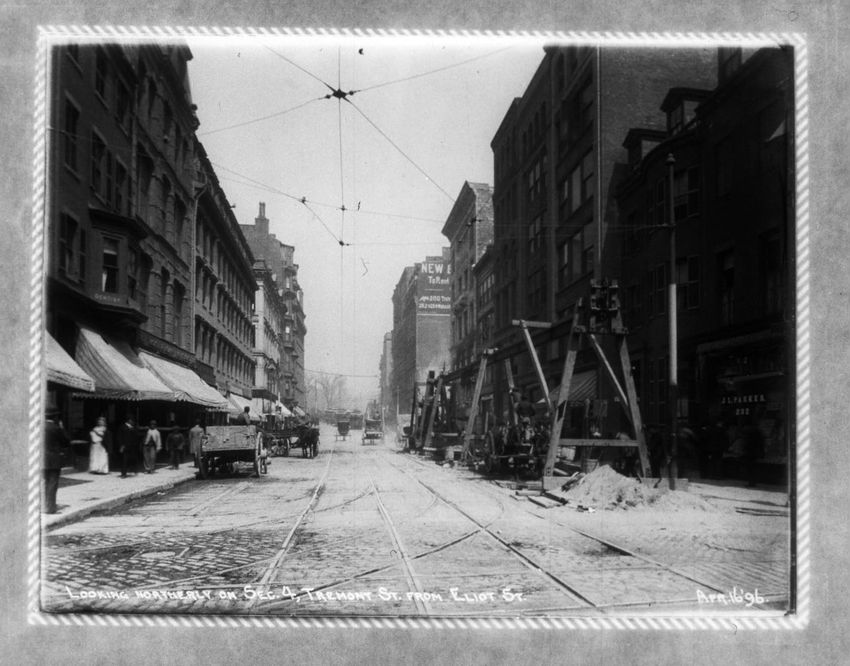 The Houghton & Dutton Department Store can be seen on the other side of Tremont Street.