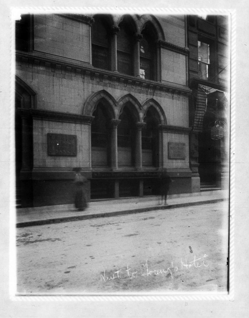 A.C. Libby & Sons, stationers, can be seen on the other side of the street. The Holland Wine Company store is to the right of the stairway covering.