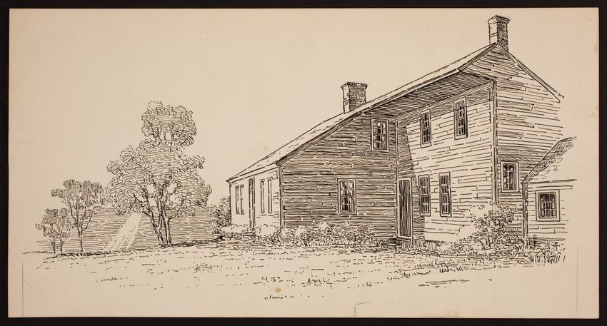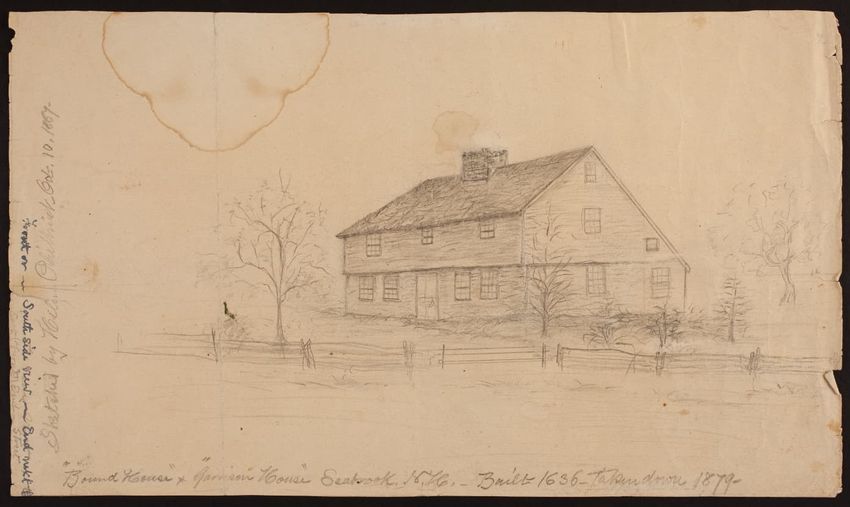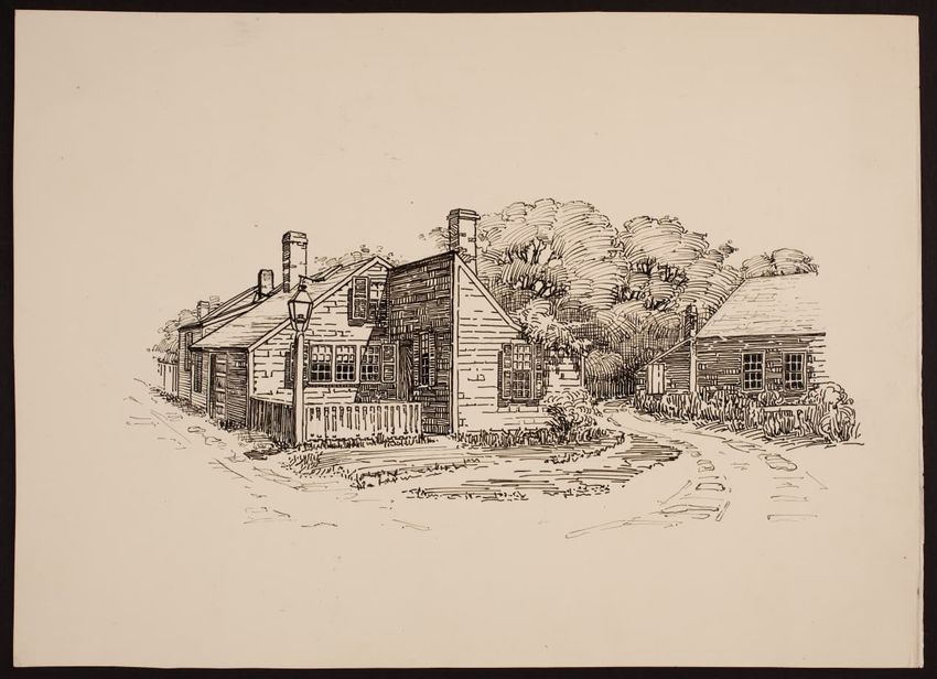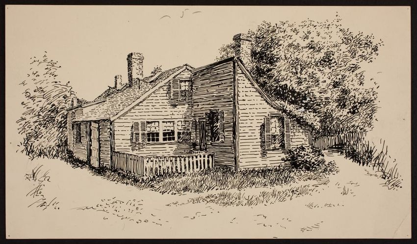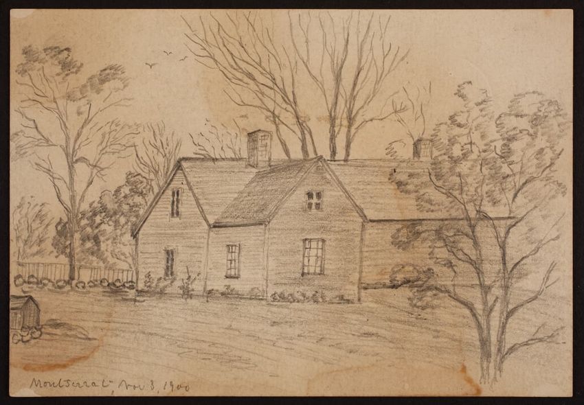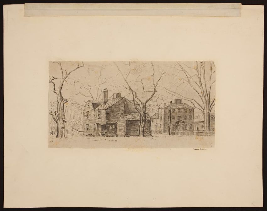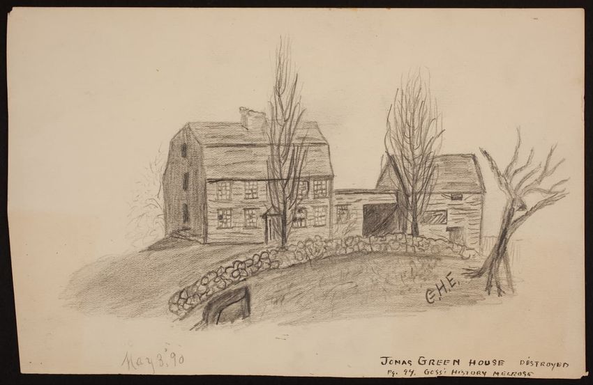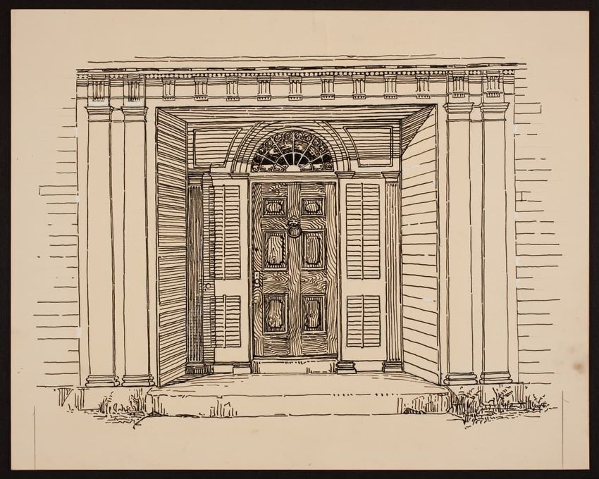 Rough sketch of fireplace and stairway from Bartlett House in Newburyport, built around 1805. Reverse is a menu from the Union Club. Stairway - Atkinson House in Newbury; Dalton Club.