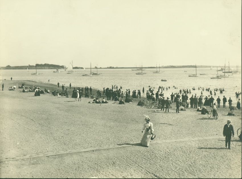 The Dude Train traveled from Boston to Woods Hole, Massachusetts from June 1st to October 1st for the convenience of summer residents starting in 1884. The train made its last run at the end of the 1916 season. Photograph by Baldwin Coolidge.