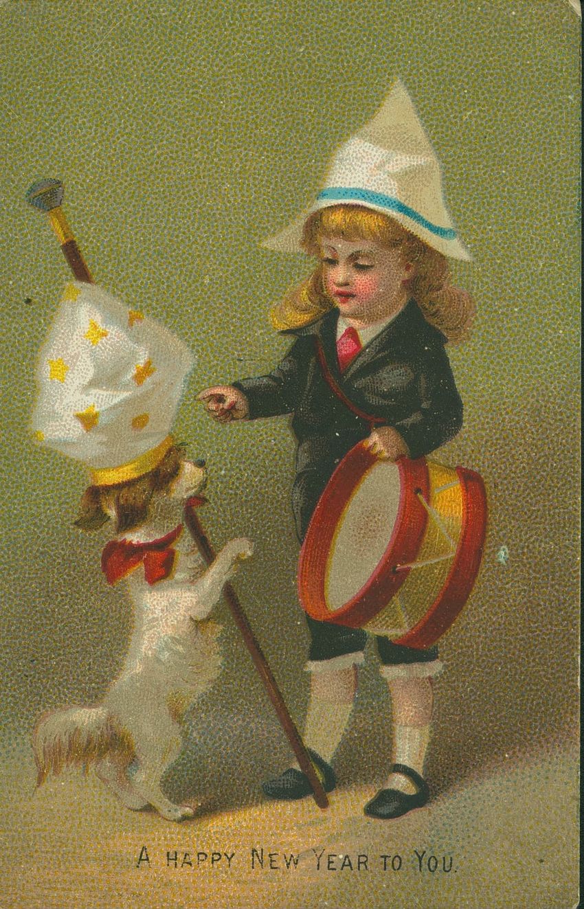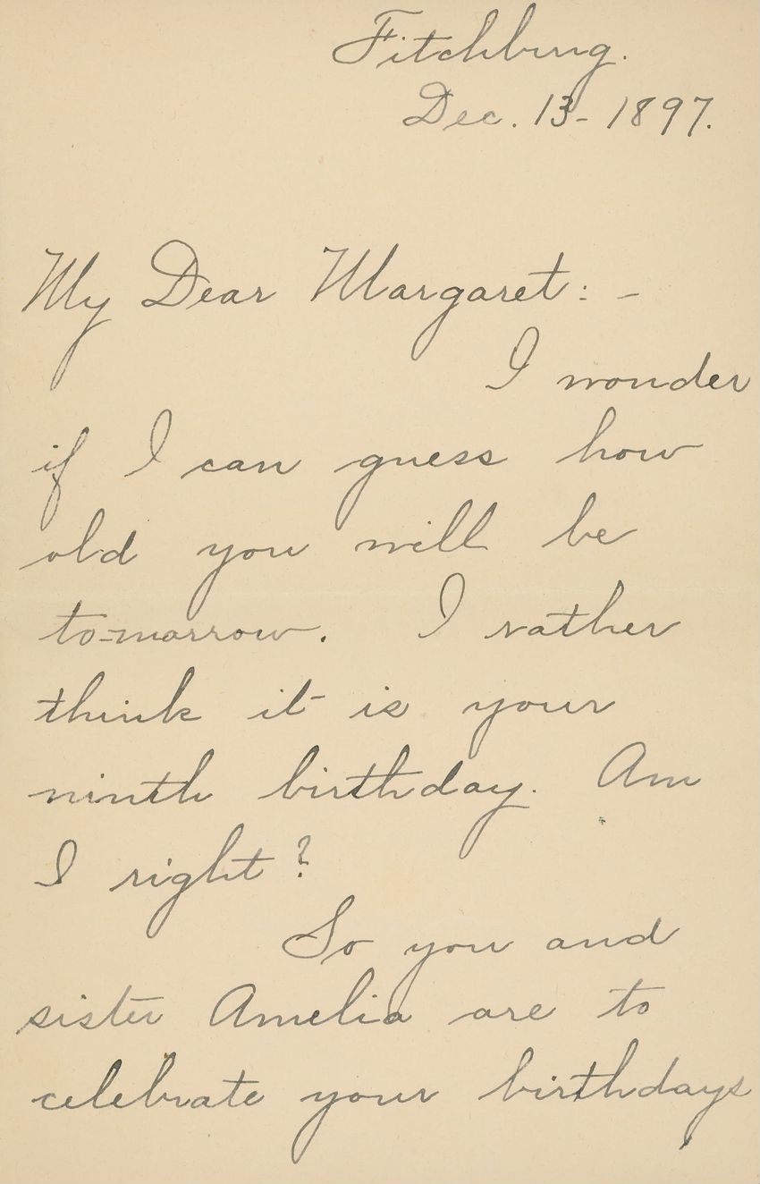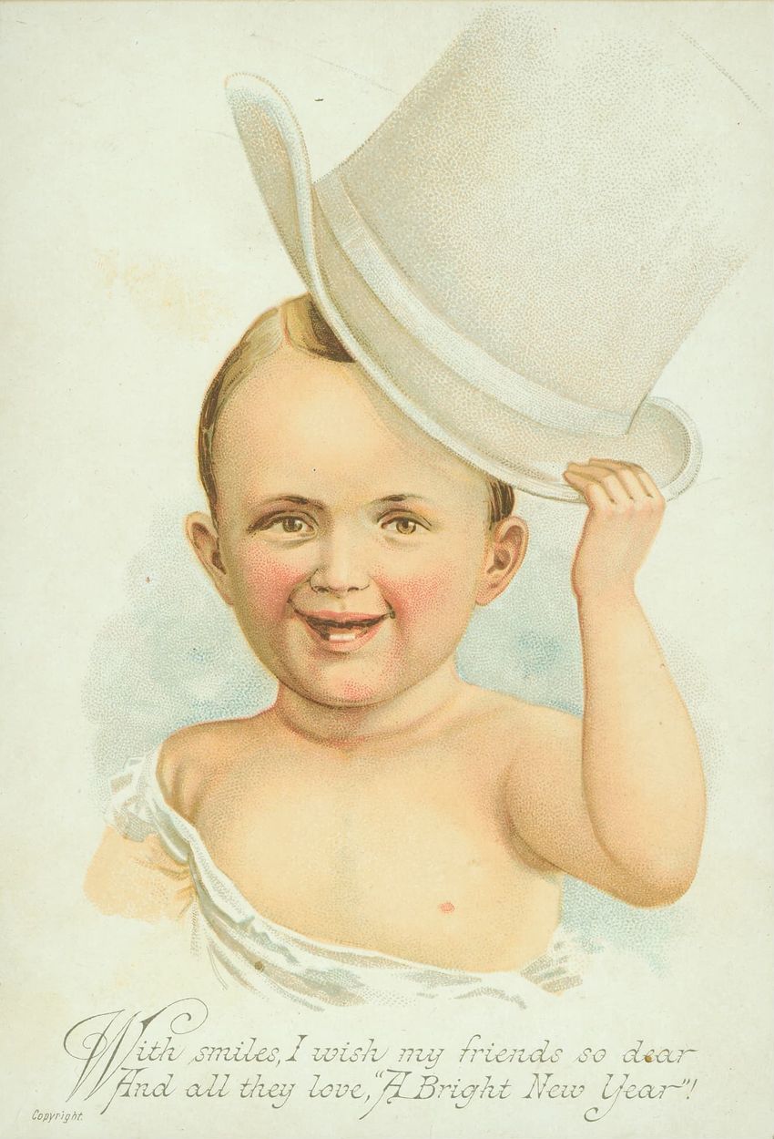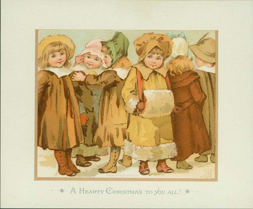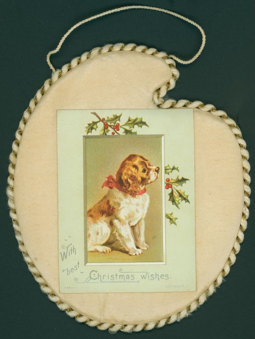 Christmas card with flowers at opposite corners which reads: "Once more a Christmas greeting do I send, This year to thee, my dear and valued friend!" diagonally across. Inscribed on the reverse "With a very Merry Xmas from your loving MRB! 1880"