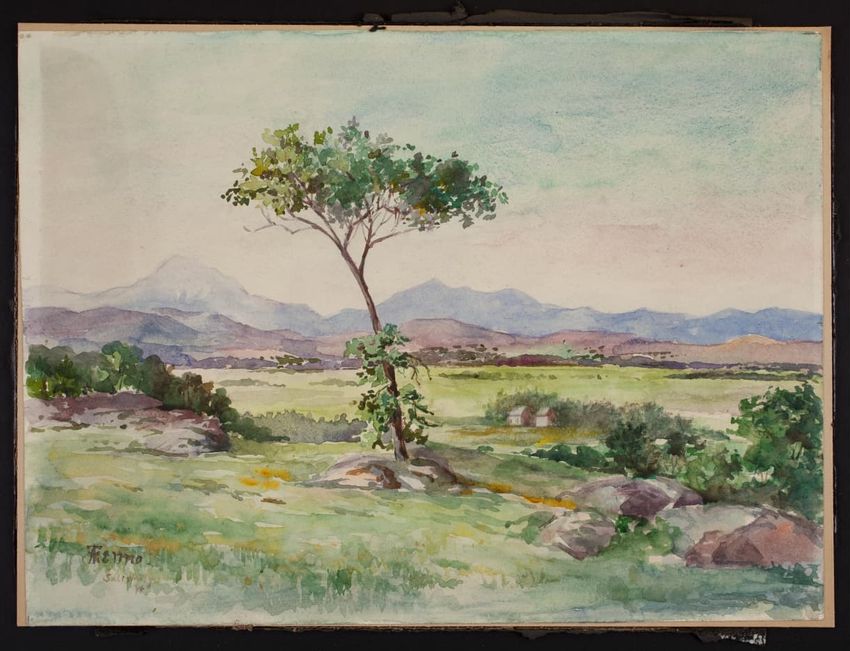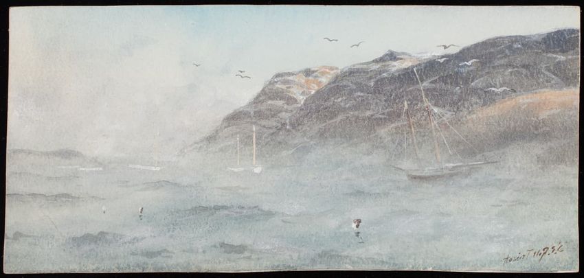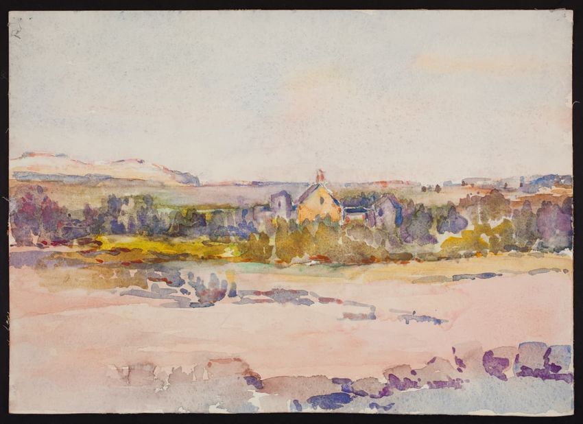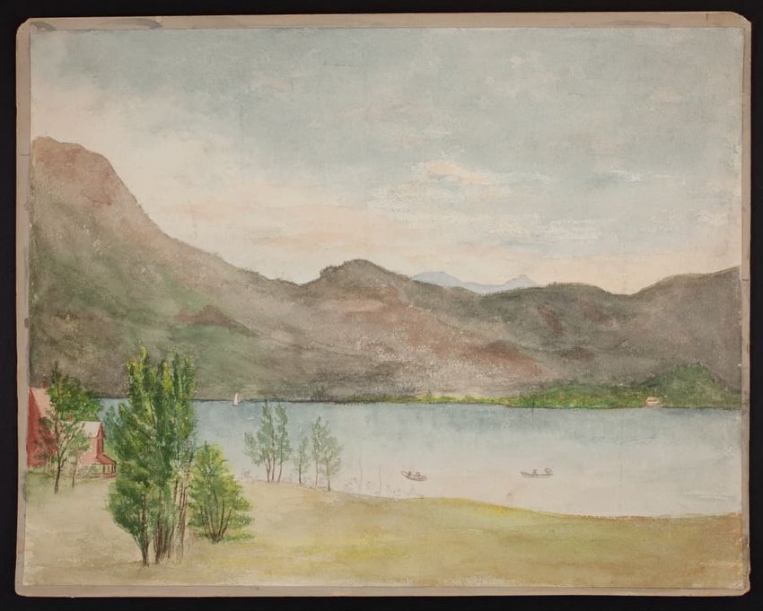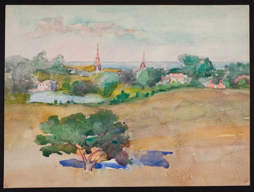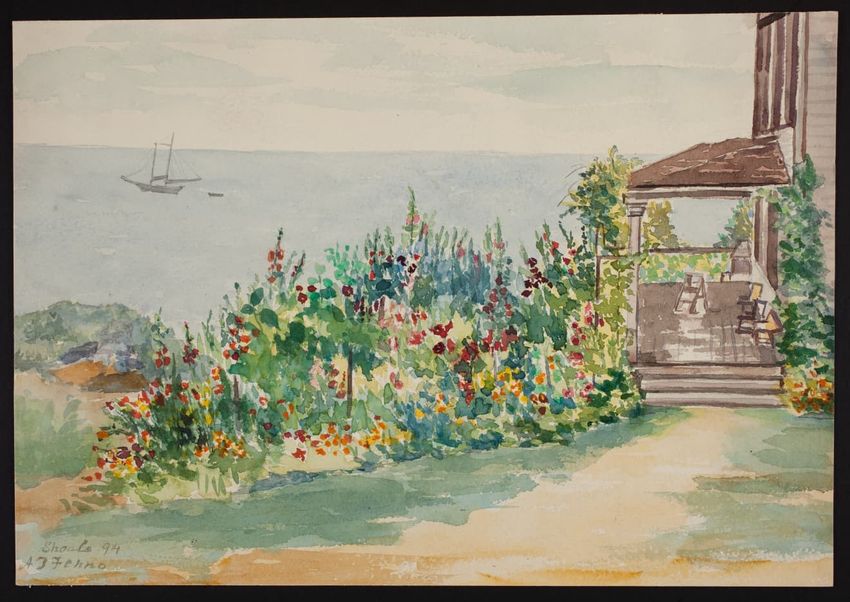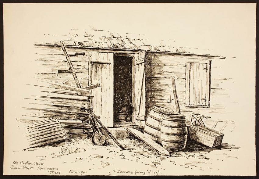 Grays. House, built about 1740, seen from side and front, from street. Other houses across street. Fencing runs around property and down street.