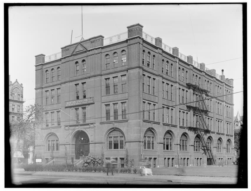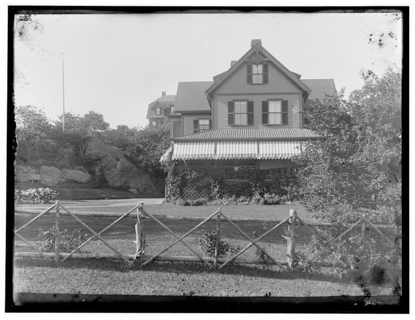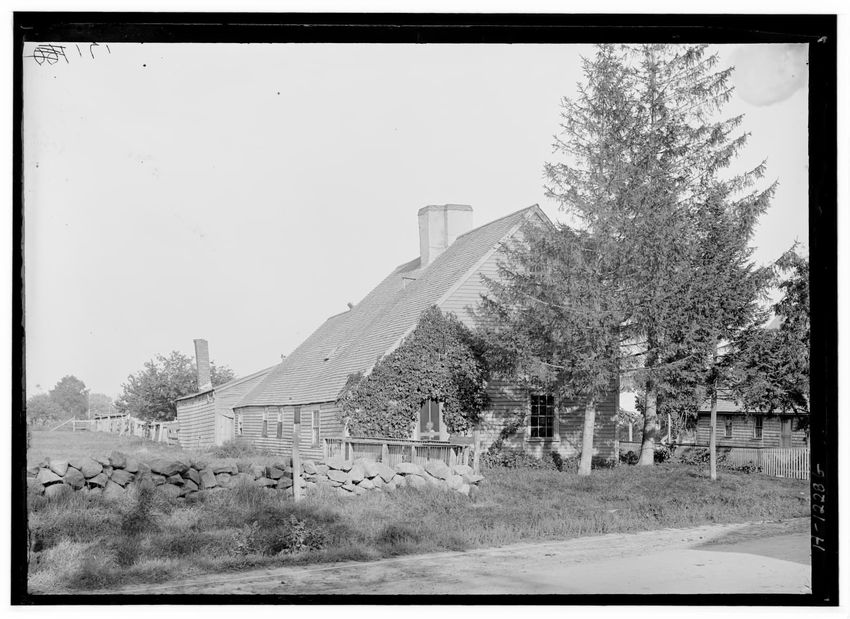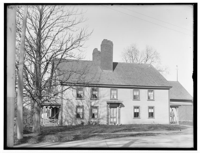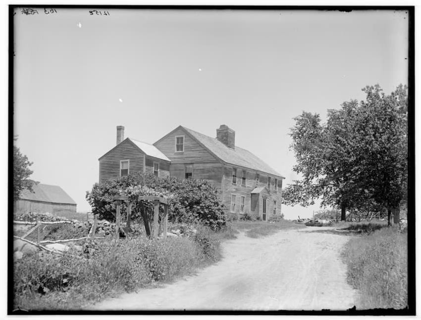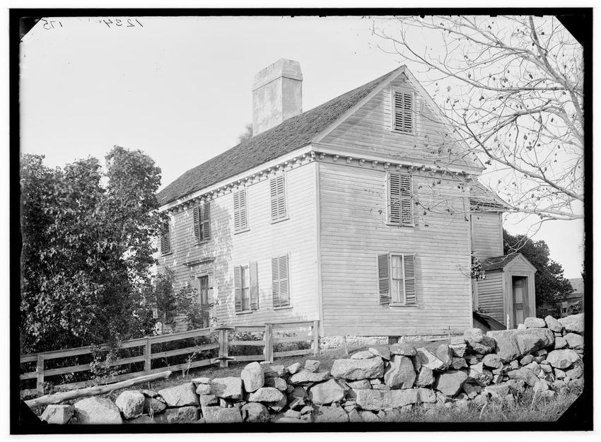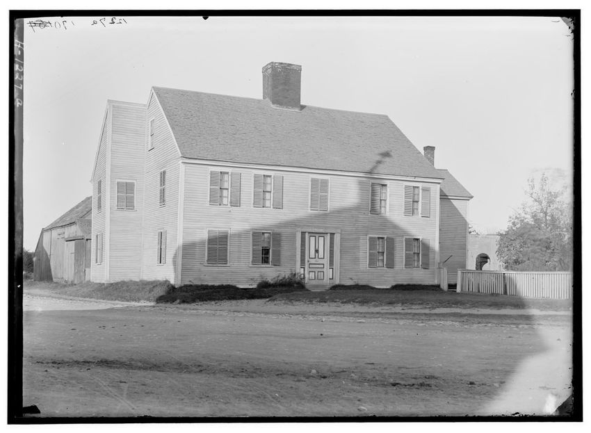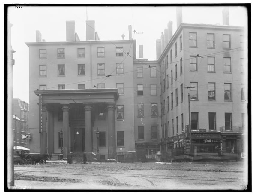The image depicts the Dellaway House, a three-story brick building located on a corner in Boston, Massachusetts. The house is surrounded by a metal fence and a cobblestone street is visible in the foreground. Adjacent buildings, including one with the number "181" displayed on the window, are also s...