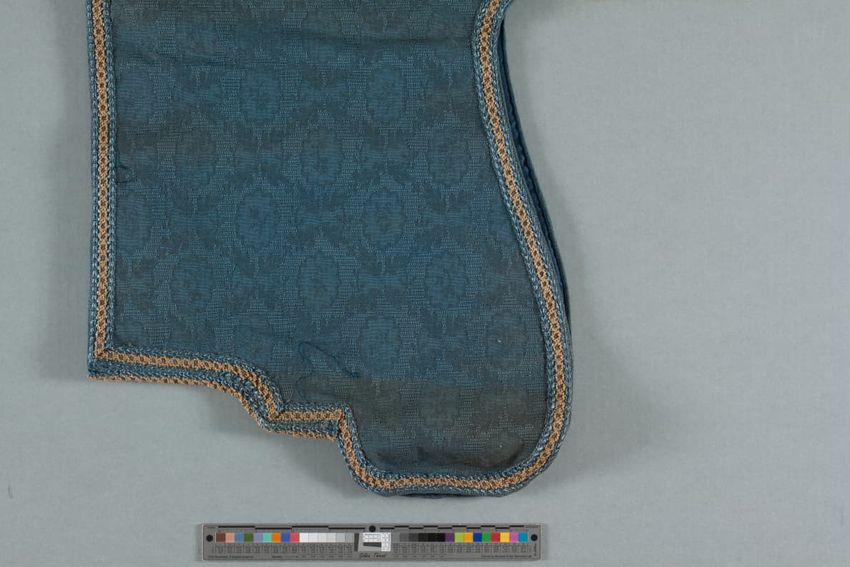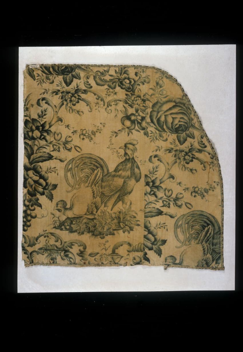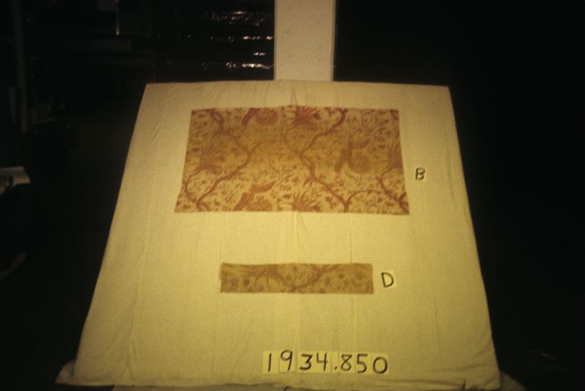 crewelwork (technique), embroidering, linen (material), piecing, wool (textile)