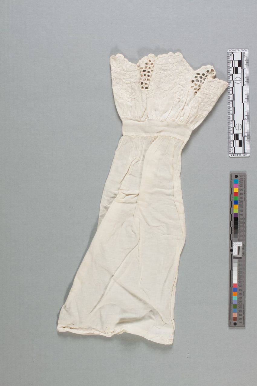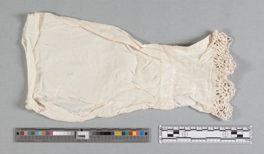 Small, rectangular, domed top, leather-covered trunk. Pine, leather, brass. Brass handles and oval plates at center of top. Leather is held in place with leather strapping and brass studs. Iron hasp and lock plate. Interior is lined with printed Sermons from Newburyport Churches, by Reverend John...