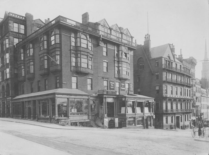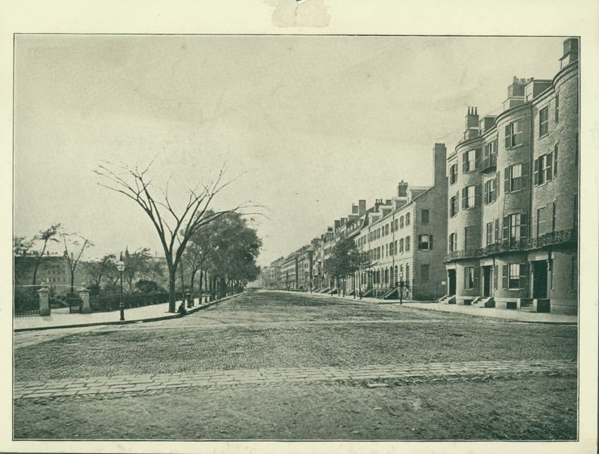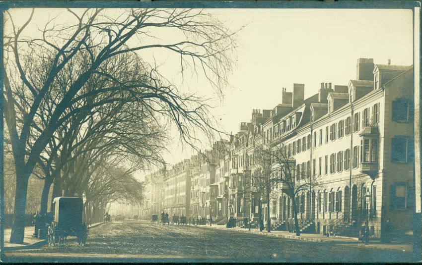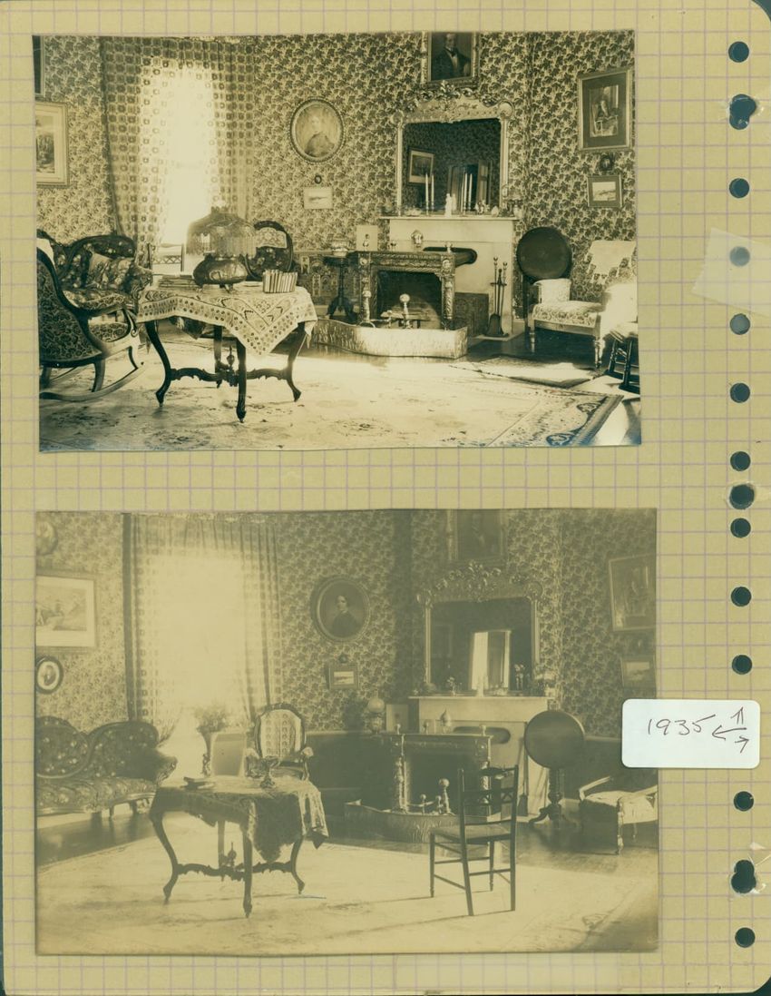 Image depicts the sumptuous front parlor at the Nathan Appleton residence on Boston's Beacon Hill during the time of William Sumner Appleton, Sr.'s residency (Nathan's son). The rooom is filled with brocade covered chairs, finely carved wood furniture and many hung portraits. The floor is carpeted i...