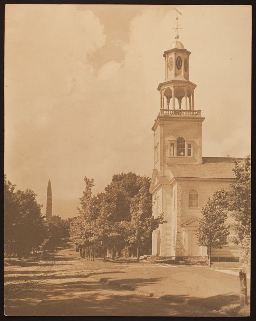 This print shows the Gates Elm, the "noblest elm anywhere," with the Gates House, Framingham, Mass., and others in the background. The Gates House was demolished in 2015.