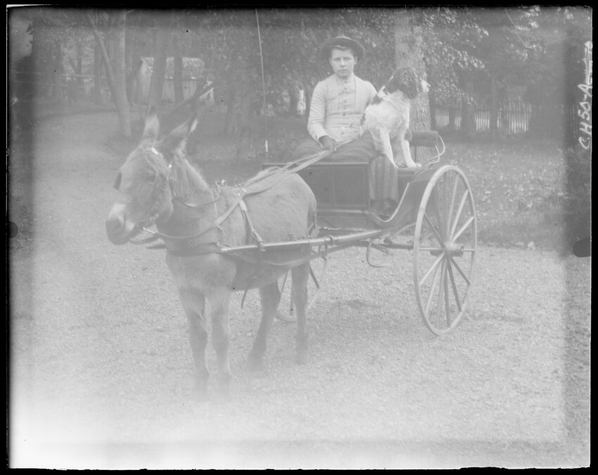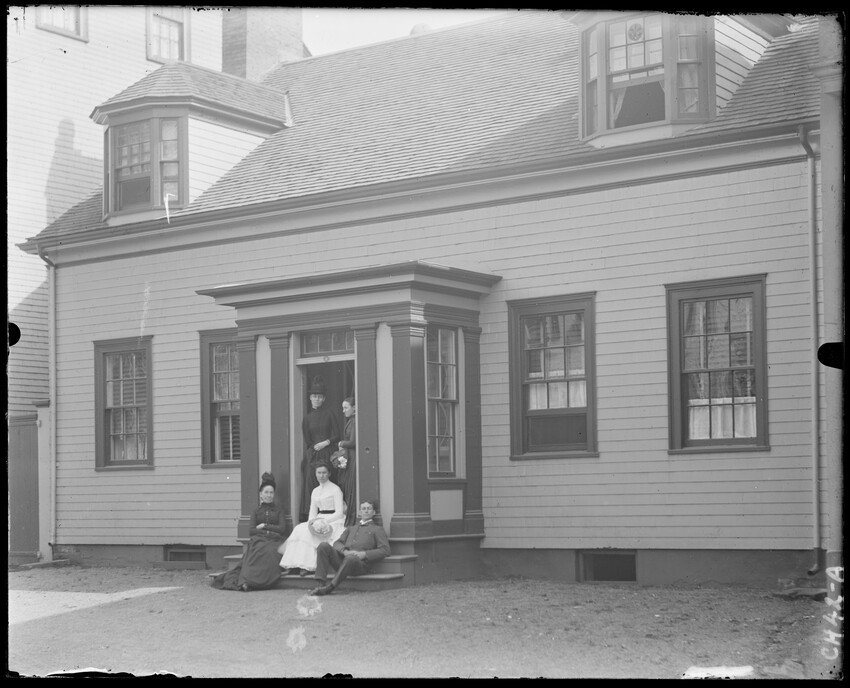 Front of house, doorway surrounded by vines, CH1-A Closeup of two women seated on porch, CH2-A House with shingled tower; two boys in doorway, CH3-A Two women in rowboat, CH4-A Fishing nets on shore, island in distance, CH5-A Sailboat, rowboats, lobster trap, people on shore, boats in water, CH6-A Close-up of rowboat on shore; dead fish, CH7-A Chickens and rooster behind fence, CH8-A Wooden porch with hammock, house in distance, CH9-A Little girl in hat and coat seated on a stone wall in woods, CH10-A Woman; boy holding parasol on donkey; trees behind, CH11-A View of the State House dome through trees; stone wall and railing, Boston, Massachusetts, CH12-A Two women in sleeveless dresses posed in front of curtain, CH13-A Man; cart with trunks pulled by dogs; houses in background, CH14-A Large house, CH15-A Man playing with dog on steps of house, CH16-A Two women sitting with two dogs on rugs near reservoir in city, CH17-A Boy seated in grass looking at flower, CH18-A Closeup of old woman seated in doorway, CH19-A Girl and boy in large hats behind fence, in front of porch, CH20-A Group posed in woods with dog, Brunswick, Maine, CH21-A Houses on shore, water, Port Clyde, Maine, CH22-A Burne's apple tree, house hidden behind tree, CH25-A Sailboats on the water, land behind, CH26-A Man seated on garden bench in front of tree, CH27-A View of seashore, houses, and farms, CH28-A Sailboats; land behind, CH29-A Sailboat with sails down, dock, barrels, house, CH30-A Sailboat at dock, person on dock, land behind with house and lighthouse, CH31-A Ship being built, CH32-A Woman peeling vegetables near back door of house, man standing, CH33-A Near view of town on riverbank, two people in rowboat, CH033-A Woman seated on porch, wicker chairs, and small table set with dishes, CH34-A Boats on water, land, no houses, CH034-A Town on river from opposite shore, CH35-A Simple bridge over water, house on right, CH36-A Wooded shoreline, cabin, water, CH37-A Group sitting on rocky beach, boats on water, CH38-A Group on rocky beach; town, boats, and dock across water, CH39-A Two women seated on porch steps, CH40-A Three people standing by tree, houses behind, CH41-A Group in doorway of house, CH42-A Woman seated in chair in garden, picket fence behind, CH43-A Boy standing in hole in ground in woods, CH44-A Boy standing in hole in ground in woods, CH45-A Wooden house behind picket fence, other houses, CH46-A Woman in shawl on chair on porch, CH47-A Wooden house behind picket fence, CH48-A Woman seated on porch with cat and dog, CH49-A Boy and dog in donkey cart, CH50-A